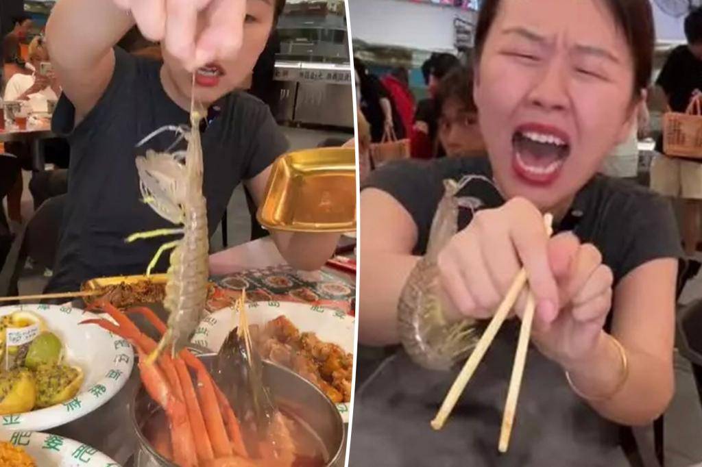 視頻中,可以看到這位美食家試圖將活生生的甲殼類動物放入盛有其他海鮮的鍋中。這個小生物決定還擊:在她第二次用筷子夾起這隻滑溜的蝦子後,這小傢伙緊緊抓住了她的手,並用其一隻捕食性的前臂刺傷了她,讓她痛苦地尖叫起來。