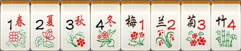 1️⃣一台花|胡牌時持有「春夏秋冬」或「梅蘭竹菊」其中一組花牌,不再計算正花番數