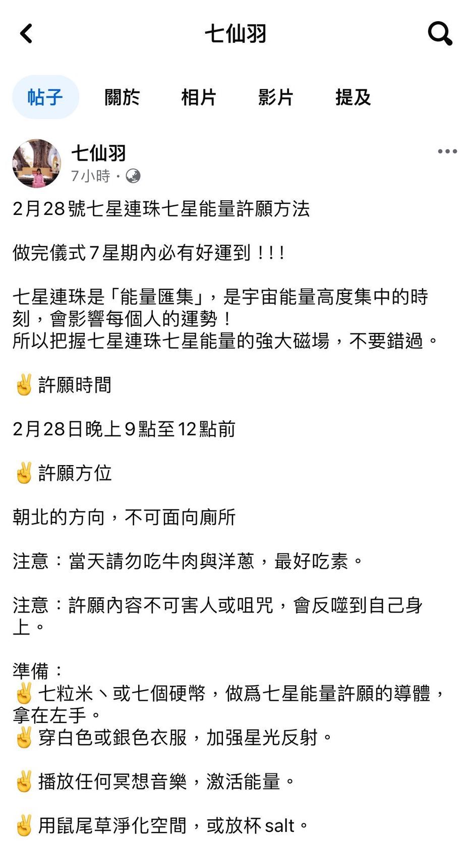 對應「七星連珠」,七師傅昨晚在Facebook教大家利用七星的能量開運,更表示做完簡單的儀式,7星期內必有好運。