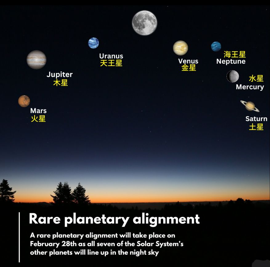今日(2月28日)會出現天文現象「七星連珠」,當晚水星、金星、火星、木星、土星、天王星和海王星七大行星會排成一線。不過玄學家七仙羽(七師傅)預言,每當「七星連珠」在玄學上代表凶兆,恐出現大型災禍、國家或有動蕩、股票會有大波動及東北方更是凶險。