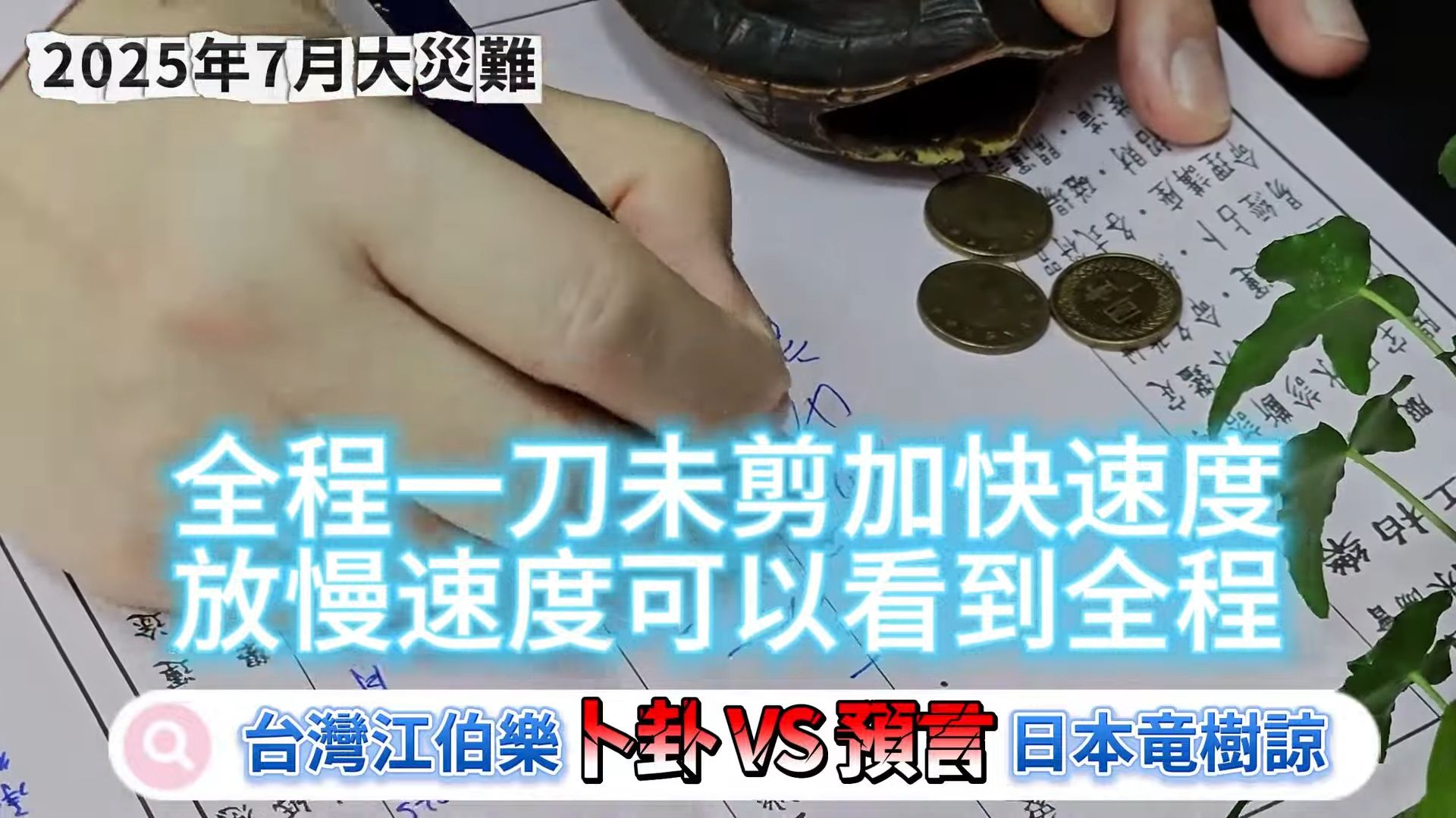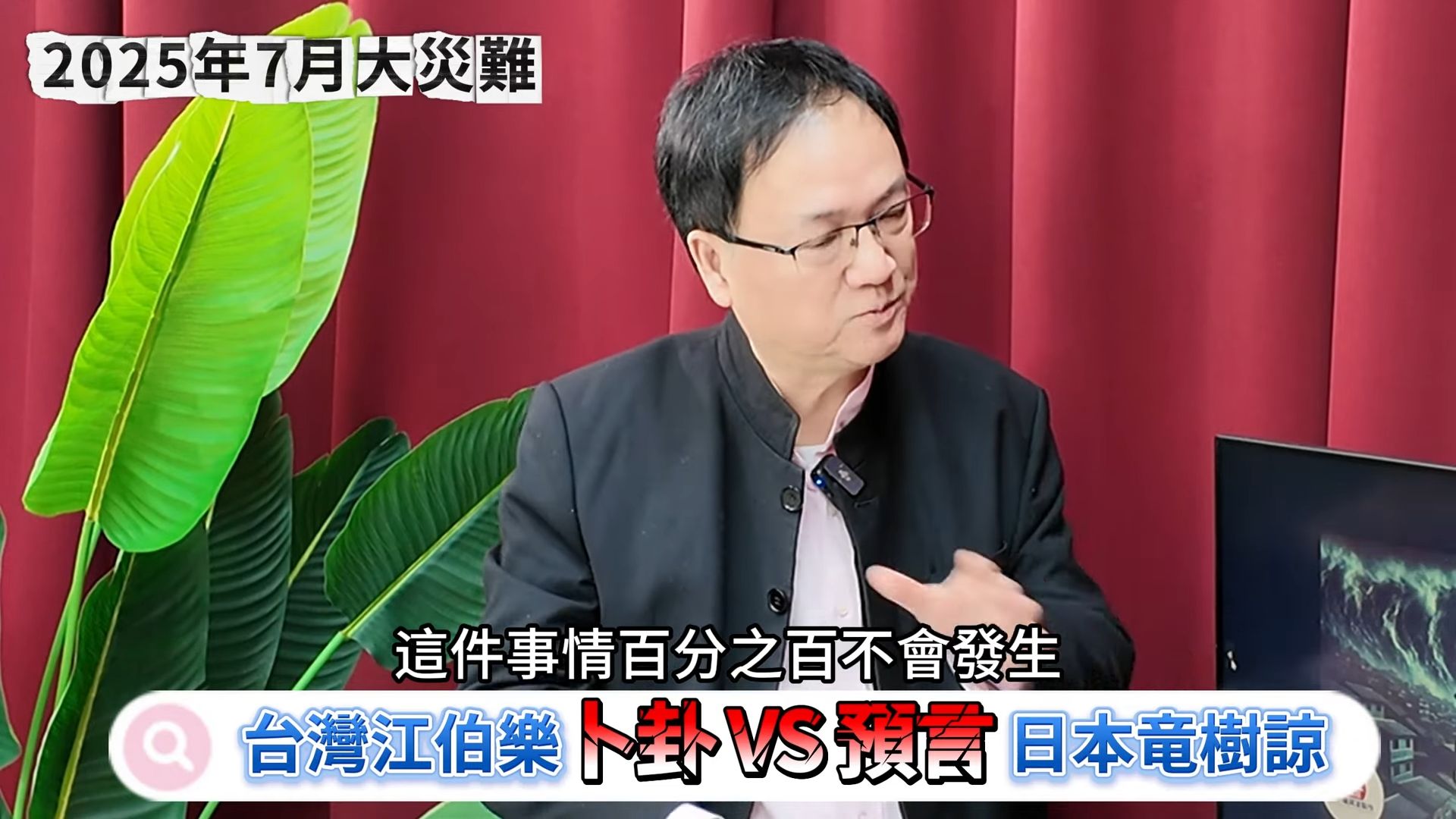 而當中最為人關注的一個預言夢境「2025年7月5日會發生巨大地震」,加上近期科學家指出日本南海海槽、北海道千島海溝巨大地震機率分別達82%及40%,更令人擔心7月5日真的會發生大地震。Youtuber頻度「蔡小編與凌製作」就邀請了台灣命理大師江柏樂在鏡頭面前以易經占卜起了2支卦,看看「2025年7月大災難」會否發生。