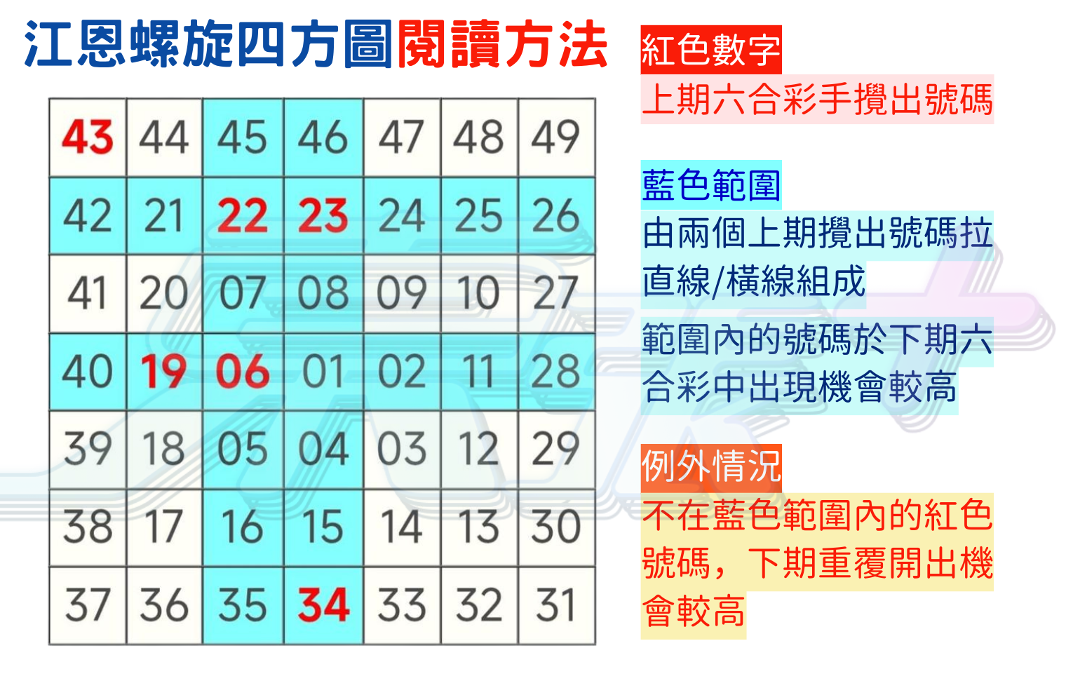 ⚠️ 例外:不在藍色範圍內的紅色號碼,如18號,在下一期重覆開出的機會通常較高。