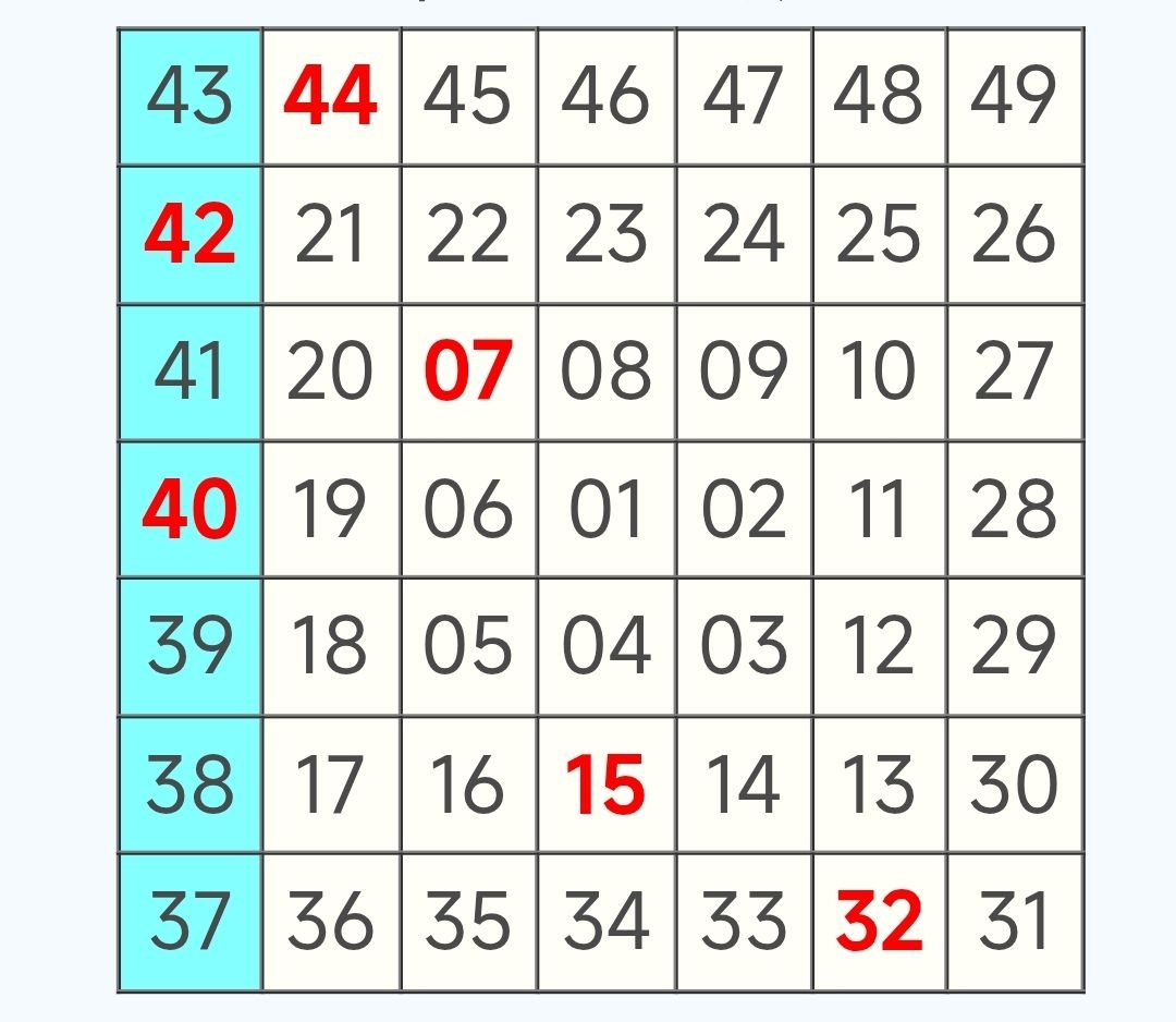 🟢 強哥將六合彩49個號碼以7格×7格排列。