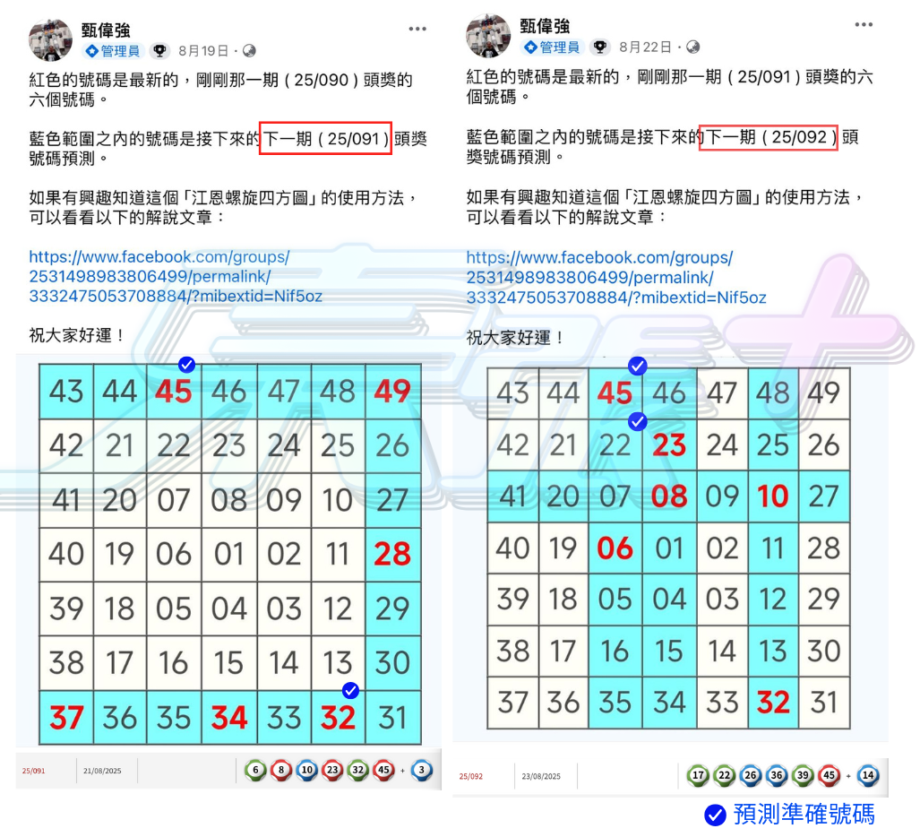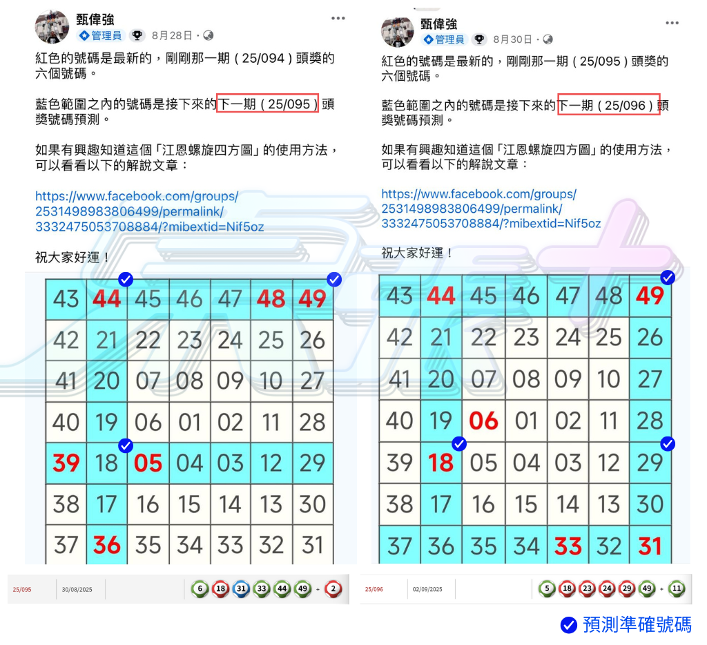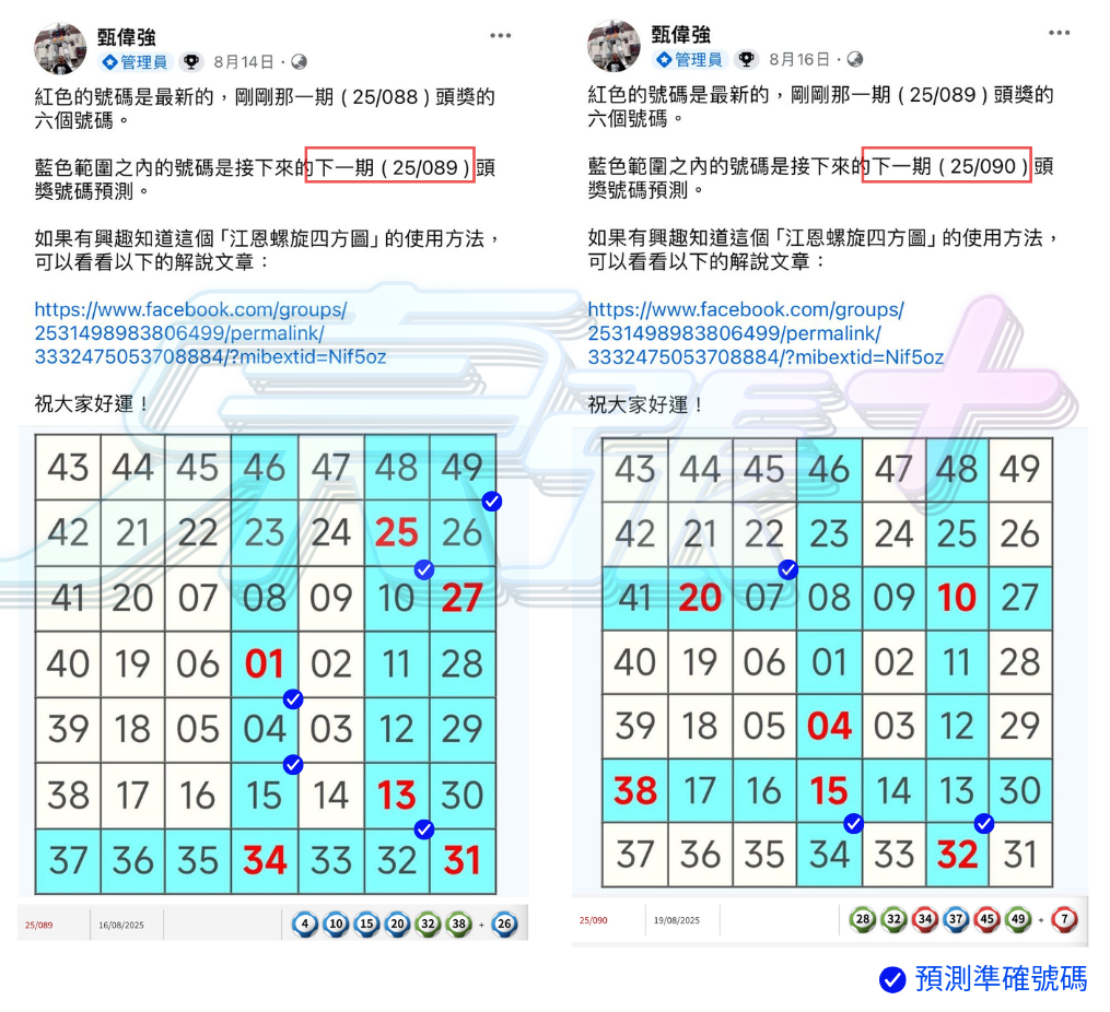 🟠 小編將強哥近10期(25/089期至25/098期)預測結果與實際頭獎號碼交叉核對,發現如下命中: