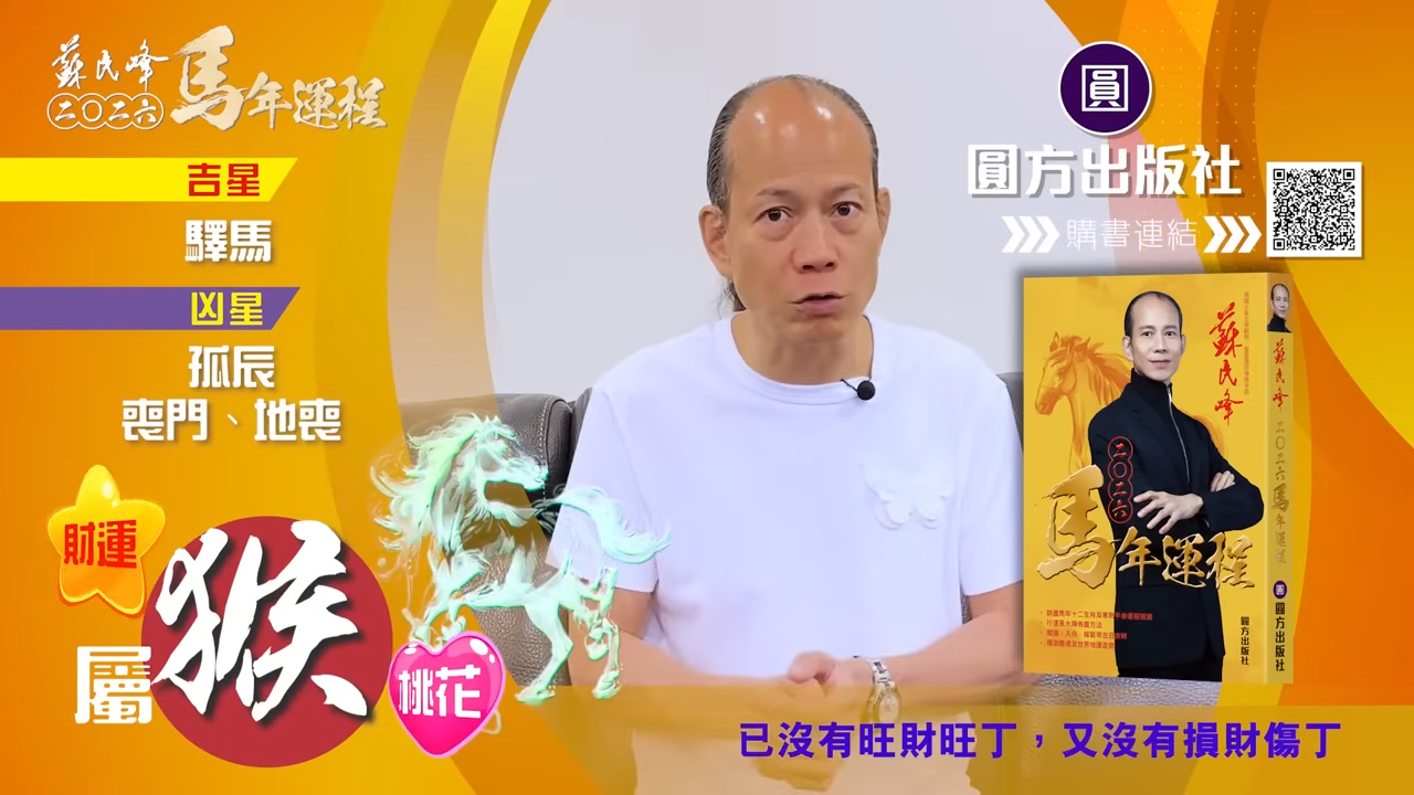 蘇民峰師傅2026十二生肖運程 屬馬人士犯太歲 感情易生變 易受傷見血 有升職機會