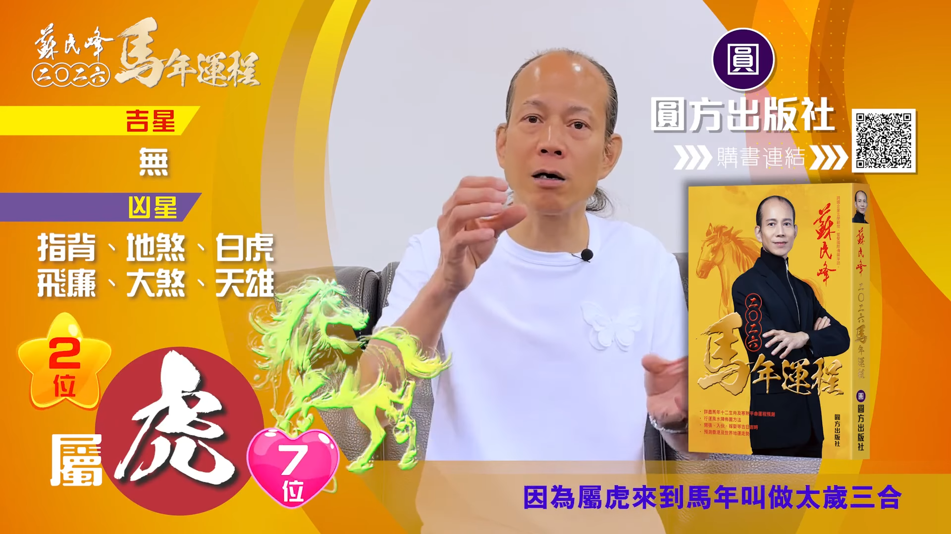 蘇民峰師傅2026十二生肖運程 屬馬人士犯太歲 感情易生變 易受傷見血 有升職機會