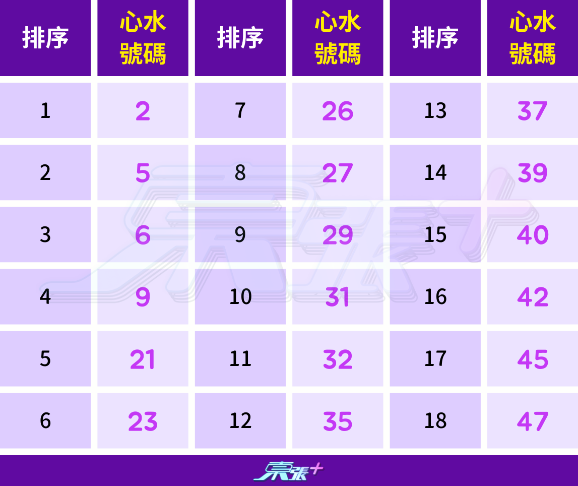 1️⃣ 自選心水號碼:2, 5, 6, 9, 21, 23, 26, 27, 29, 31, 32, 35, 37, 39, 40, 42, 45, 47