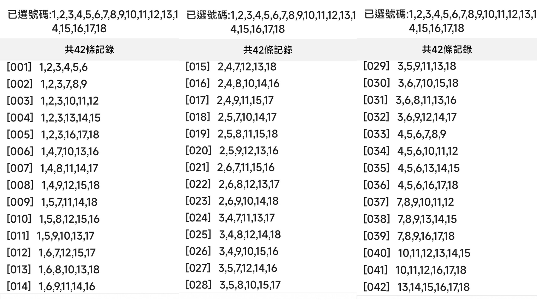 (⚠️排序方法如此類推,直至得到42注為止⚠️)