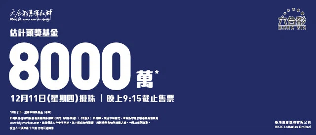 🤑 頭獎金額:8000萬(一注獨中,以每注10港元計)