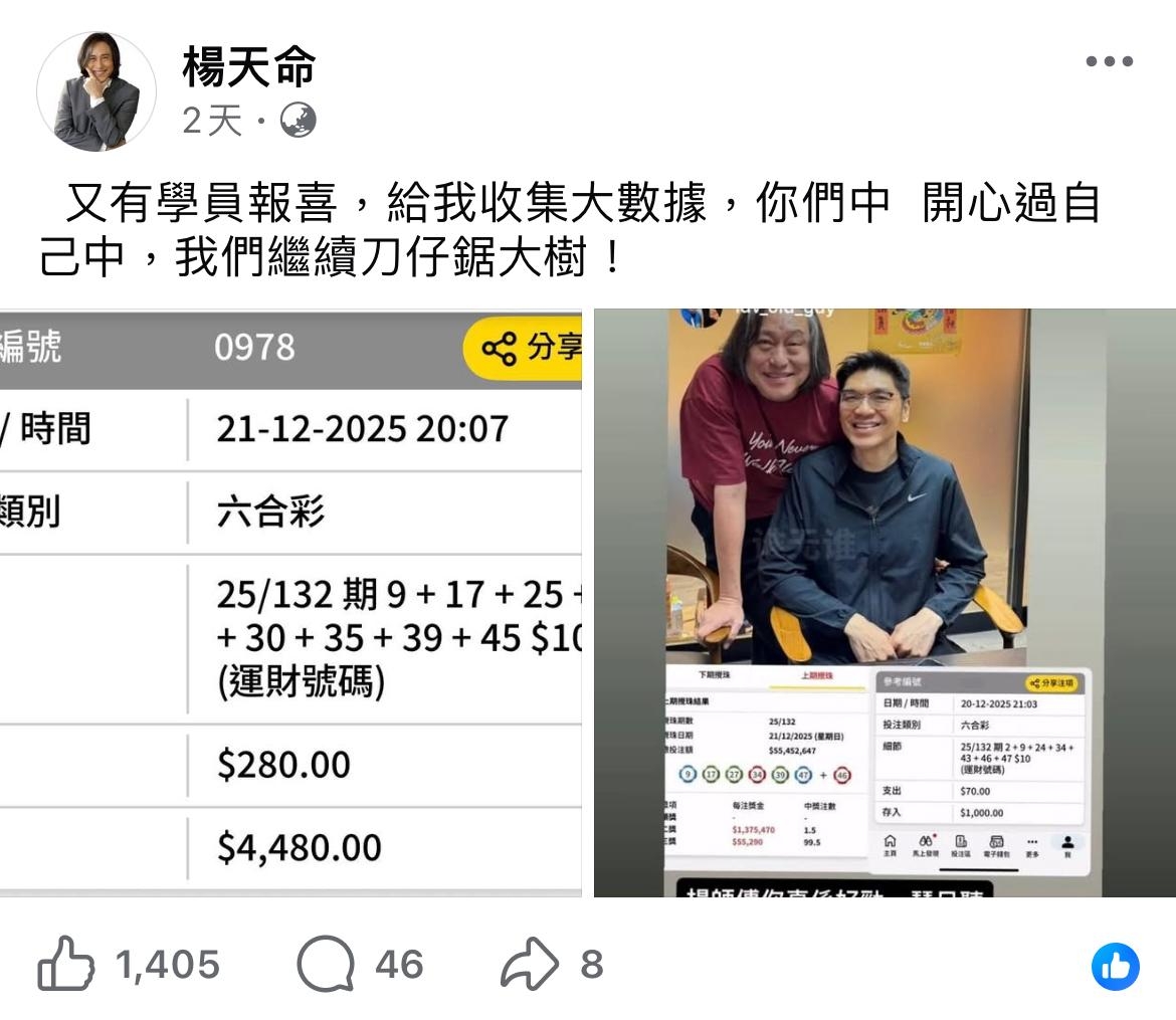 玄學家楊天命師傅以實戰派著稱,憑借30年經驗,最近一個月內連續中獎三期六合彩,總獎金近3.8萬元。這不僅證明他的催財心法有效,更吸引大批網民跟買。