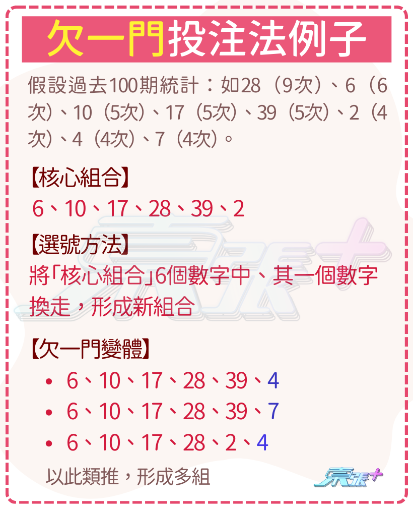 【方法一】欠一門投注法:6個熱門號碼剔走「一號」策略