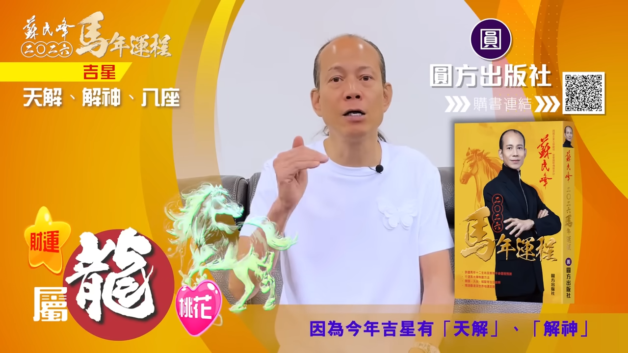 蘇民峰師傅2026十二生肖運程 屬馬人士犯太歲 感情易生變 易受傷見血 有升職機會
