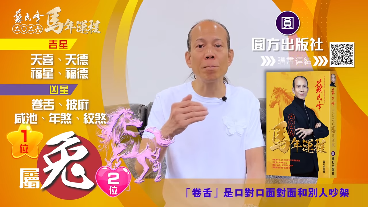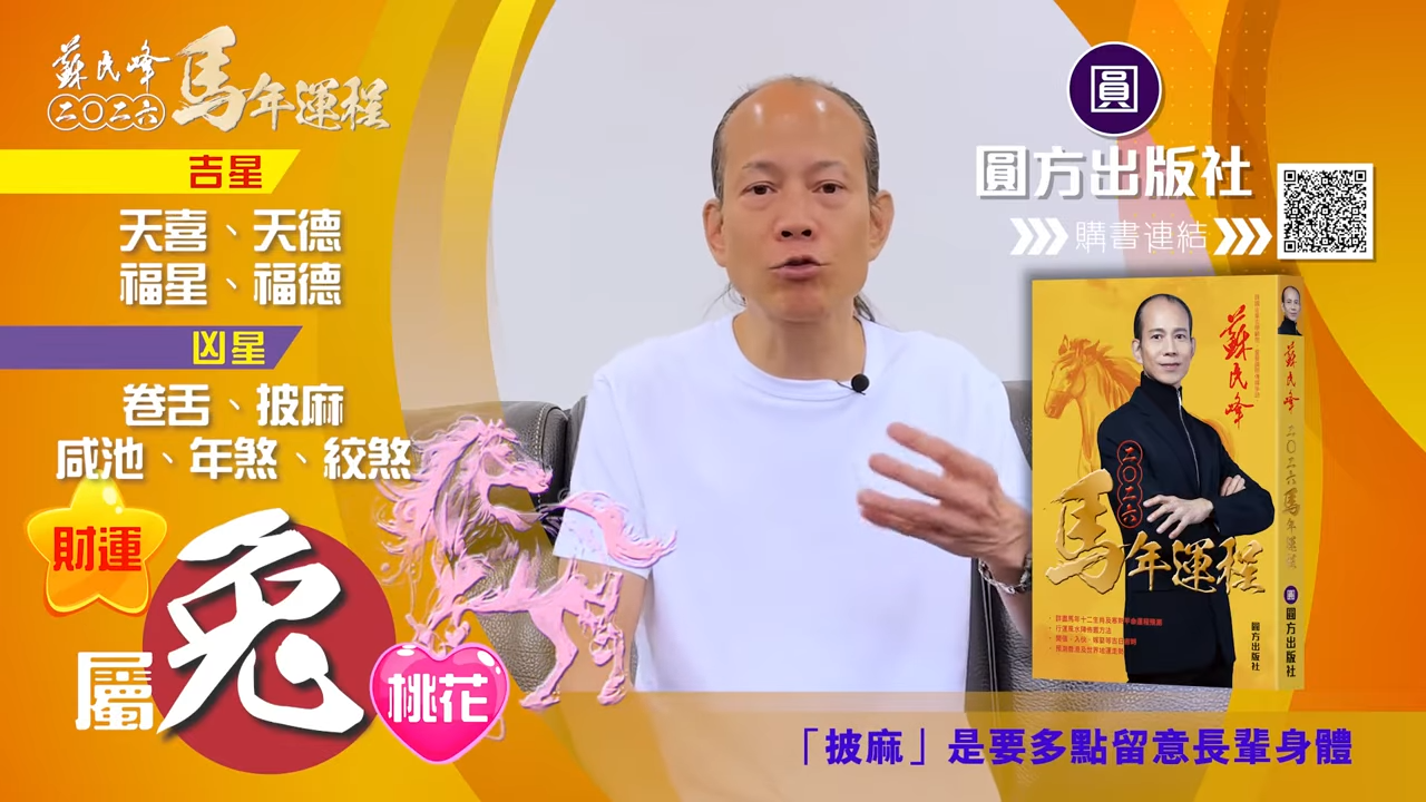 蘇民峰師傅2026十二生肖運程 屬馬人士犯太歲 感情易生變 易受傷見血 有升職機會