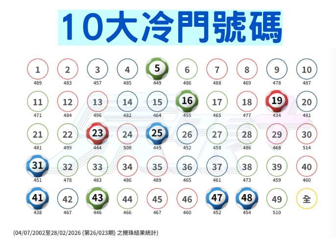 歷年六合彩冷熱門號碼