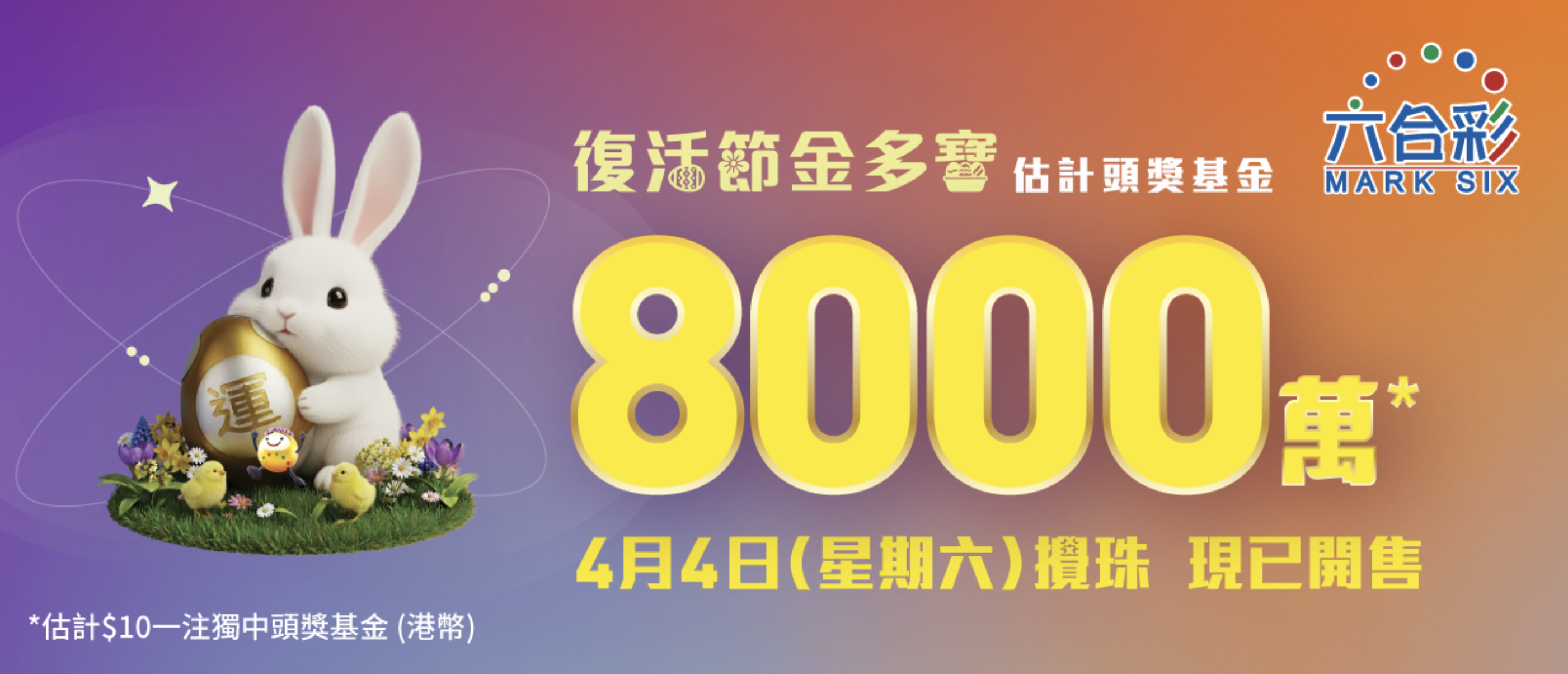 復活節金多寶頭獎8000萬 4月4日攪珠