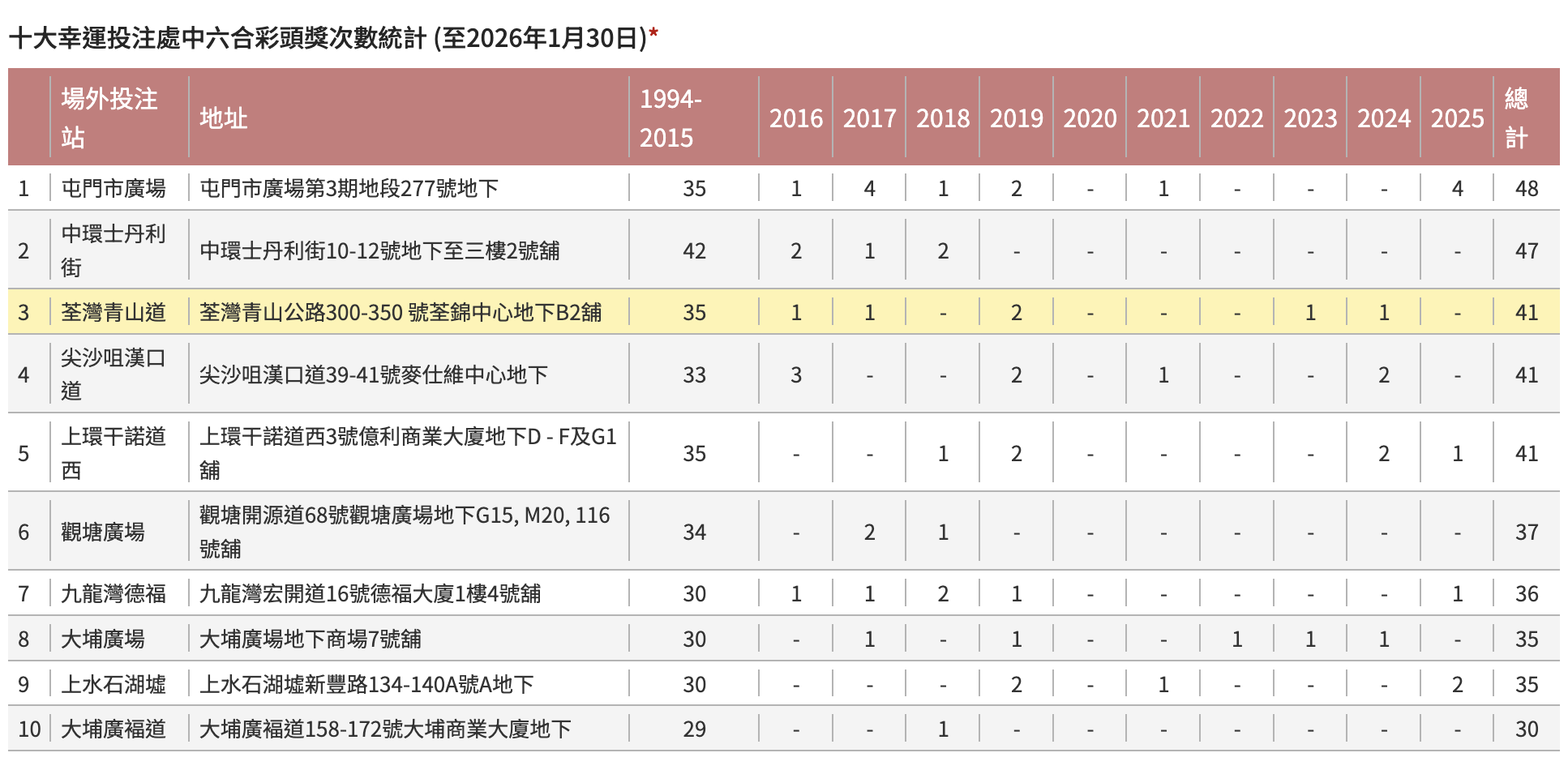 2026最新幸運投注站排名出爐 屯門市廣場打破32年紀錄