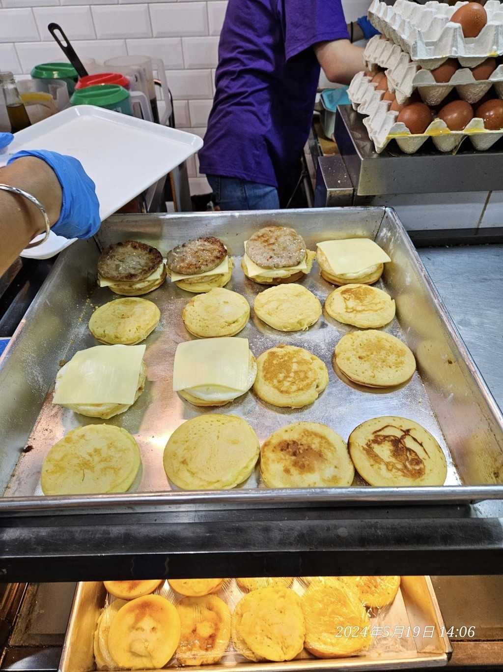 不過溫馨提示一下,餅店的熱香餅漢堡岀爐時間,均為為星期一至五早上7時半及中午12時半,至於星期六、日則為下午2時,每人限購兩個,大家記得出爐時間呀!