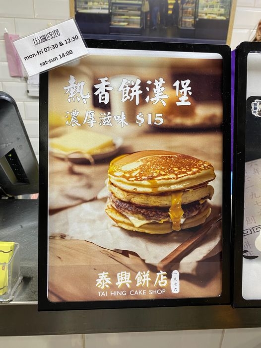 荃灣餅店「泰興餅店」推出的熱香餅漢堡,同樣以兩塊熱香餅夾住芝士及豬柳蛋,賣相極佳,網民更大讚還原八至九成McGriddles,現在更以親民價發售,CP值超高,掂呀!網民紛紛發表不同意見:「無得比,日本嗰個係即叫即整塊豬柳都又厚又多汁。」、「日本嗰個既Pancake包有楓糖粒粒分佈在裡面,如果呢間都做到就勁。」,以及用來「過下口癮」都不錯。