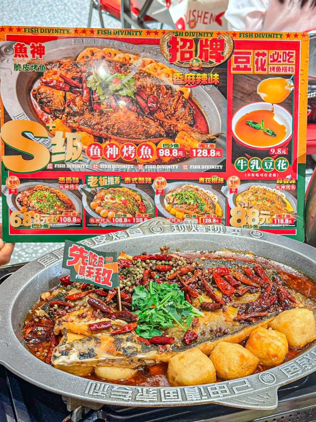 以豆花烤魚聞名的付師兄,提供了香辣和蒜香兩種口味的烤魚,外酥裡嫩的魚肉與手工磨制的豆花搭配得天衣無縫。更令人驚喜的是,豆花可以免費無限續加,讓您大飽口福。老式炭爐豆漿和酥肉、涼拌魚皮也是這裡的必點小吃。