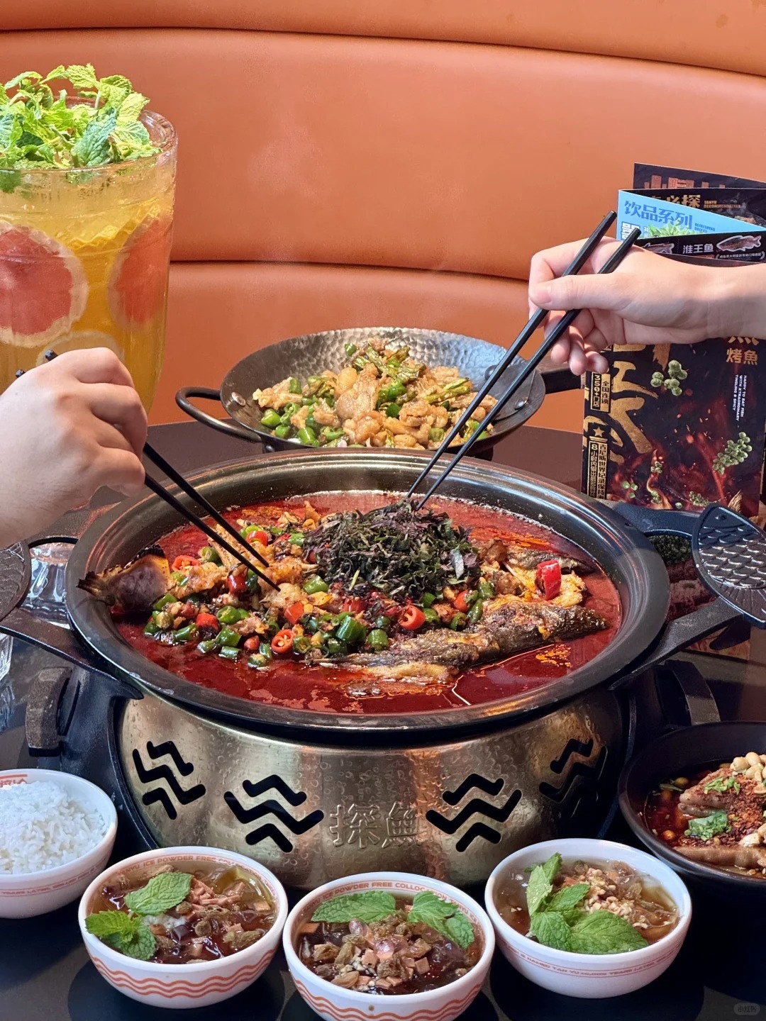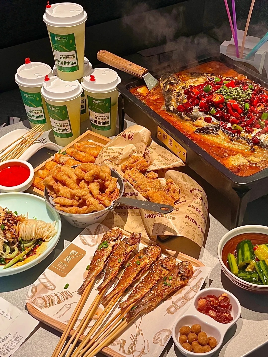探魚的鮮青椒爽麻烤魚以其獨特的爽麻口感和焦香魚皮贏得了食客的喜愛。此外,蒜香芝士牛蛙鍋也是這裡的熱門選擇,蒜香和芝士的結合,讓牛蛙的鮮美更上一層。這裡還提供無線探索的自助服務,包括自助零食、冰粉和茶水,讓您的用餐體驗更加豐富。