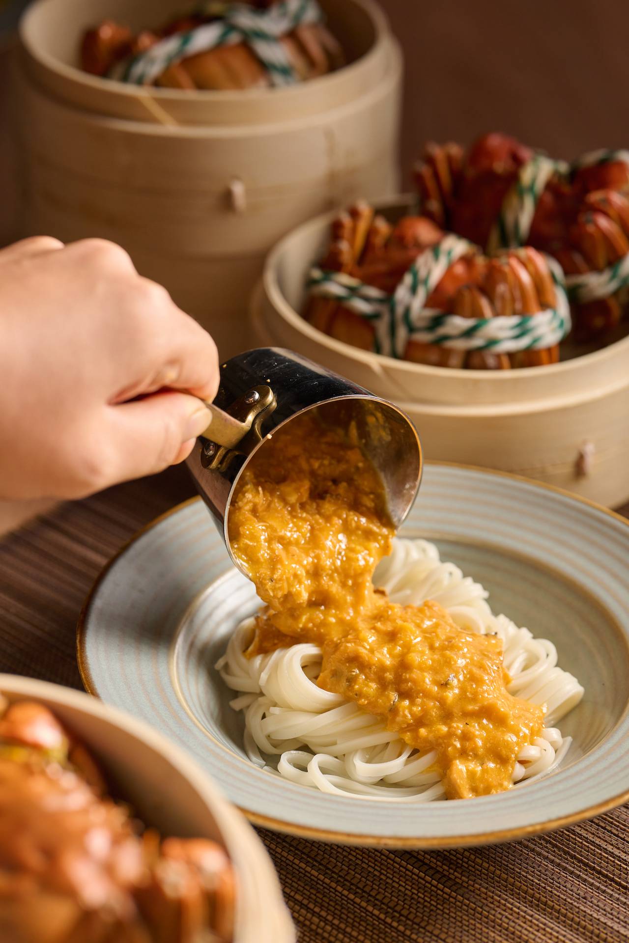 金秋大閘蟹宴選用正宗江蘇大閘蟹,青背白肚金爪黄毛,蟹肥美、肉特厚,蟹宴包括兩隻 / 三隻,每隻約 4 両, 客人可自可選清蒸或南薑酒槽蒸。加上賽螃大閘蟹蓋伴黃金蝦多士、帶子竹笙花膠羹、棗皇薑茶、蟹粉蟹肉扒菠菜苗及砂鍋蝦仁蟹粉撈稻庭麵一共 6 道菜式,款式矜貴,而家低至 8 折還免收加一及茶芥,蟹迷不要錯過。