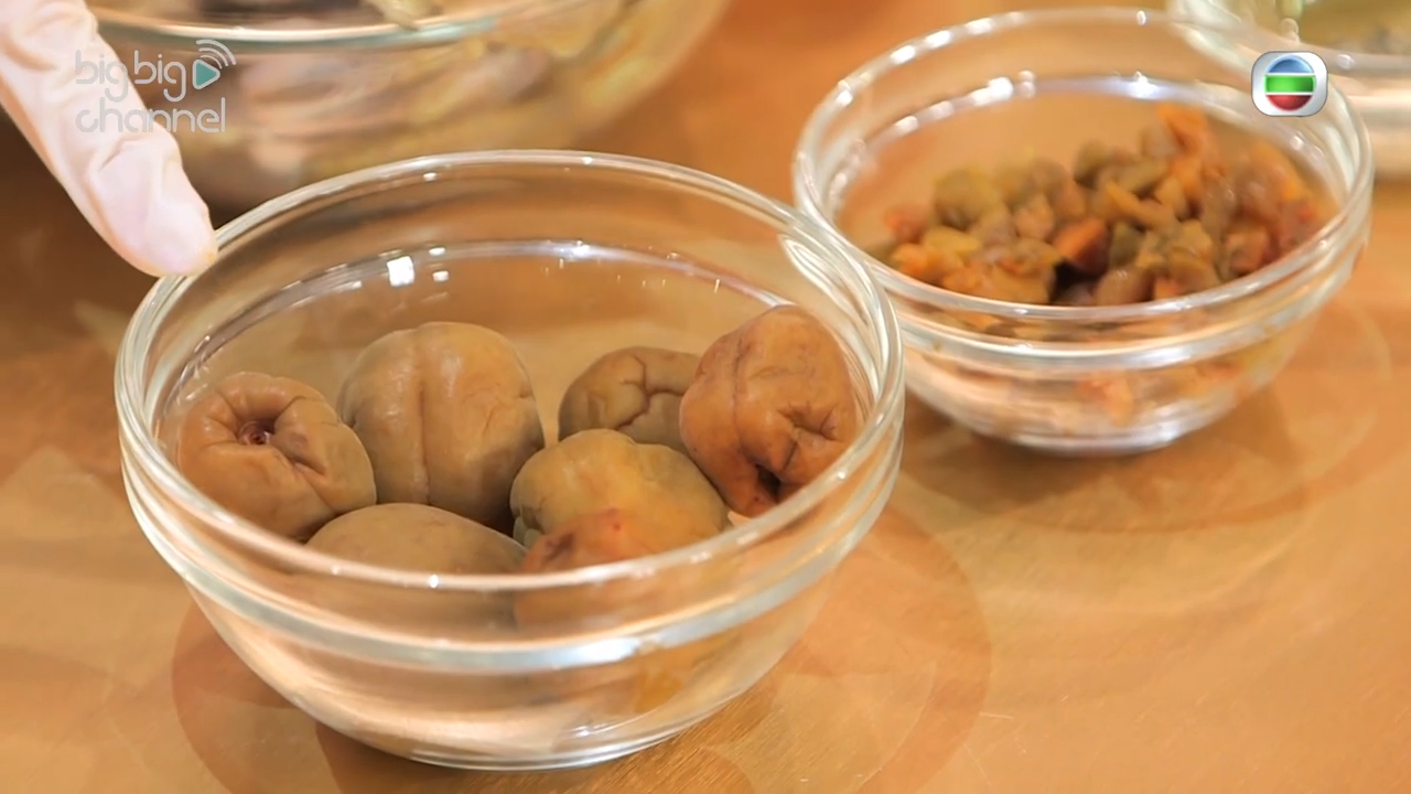 Step01:煮水滾水,大滾下花甲汆水。取部分梅子起肉切粒。