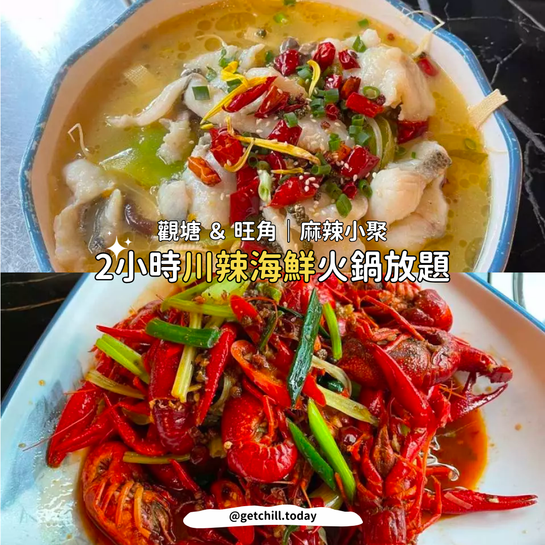 麻辣小聚現已推出全新的《2小時川辣海鮮火鍋放題》!現在你可以在觀塘和旺角的分店中盡情品嚐這道美味。這道火鍋放題不僅包括無限添加的魔鬼醬鮑魚雞煲,還有令人難以忘懷的酸菜魚鍋,回味無窮的水煮魚鍋以及重慶烤魚!這些精心製作的菜餚將為您帶來一場無與倫比的美食盛宴!趕快來我們的餐廳品嚐吧!
