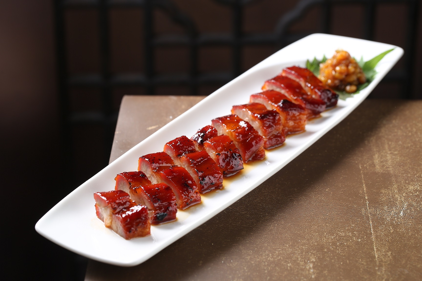 美食包括:極品蜜汁叉燒皇、鹽燒鮑魚、羊肚菌螺頭燉豬腱、香宮炸釀鮮蟹蓋伴茶凍、鮑汁鵝掌伴花菇、上湯雲腿蟲草花菠菜苗、鮮蝦飄香荷葉飯、楊枝甘露伴芝麻卷、河畔天鵝酥