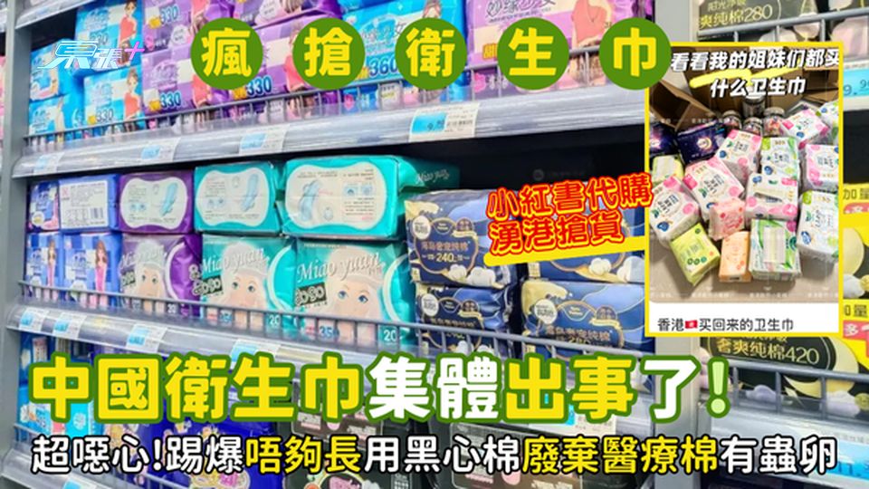 或者大家未必知,原來中國是全球最大衛生棉消費市場,消費人口大約有 4 億名女性,產業總值近千億,但近日內媒如《21世紀經濟報道》、《華夏時報》爆出中國多家衛生巾品牌出現偷工減料的問題,由尺吋到質量都被揭發出現問題,即是將 4 億女士置於驚恐之中。事件引發連銷反應,國內超市胖東來的進口衛生巾被女士們搶購一空,小紅書更有代購表示可以為客戶到香港及日本等地搶貨,有內地網民於小紅書更 post 出瘋搶半喼衛生巾的圖片,令香港女士擔心會否出現必須品被掃清的情況。