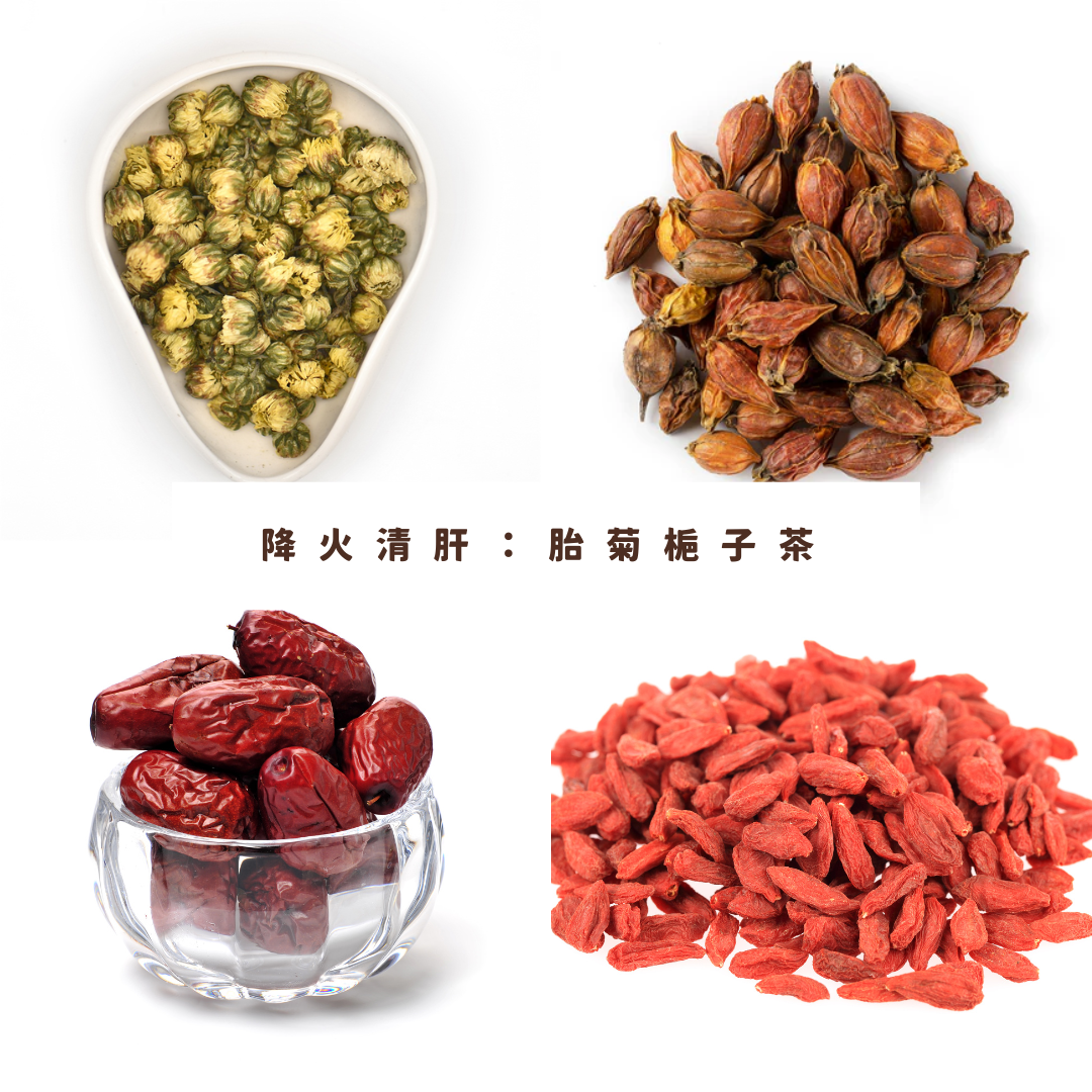 🍹 製作:胎菊3朵、梔子4顆、紅棗4顆、枸杞10顆。