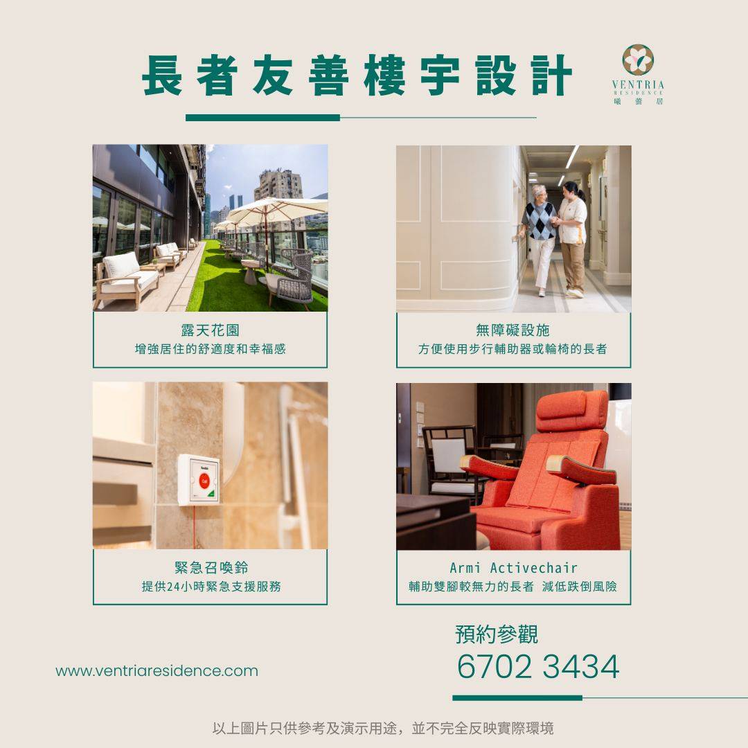 「醫社合一」亦是大賣點,物業裏有醫生、護士及社工駐場為長者提供協助,減少有長期病或慢性病,或是需要進行復健的長者舟居勞動來往醫療機構,服務團隊更可透過中央儀錶板監察長者情況,有需要更可要求特殊照顧,在健康管理上這裏跟傳統老人院的相比,概念的確抵讚。