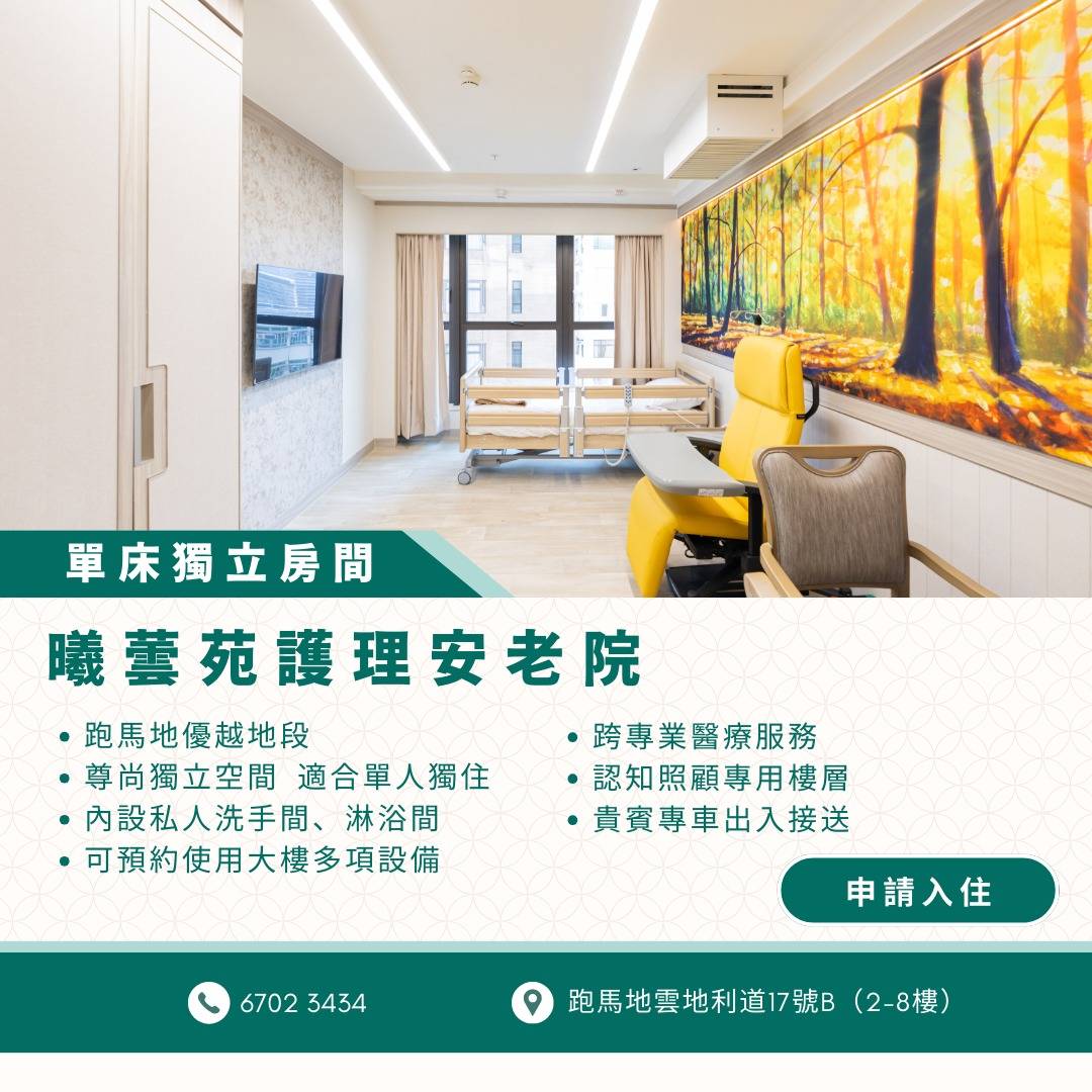 月租已包括基本護理及費用,亦可要求另外收費的復康治療,租金亦會按通脹調整。