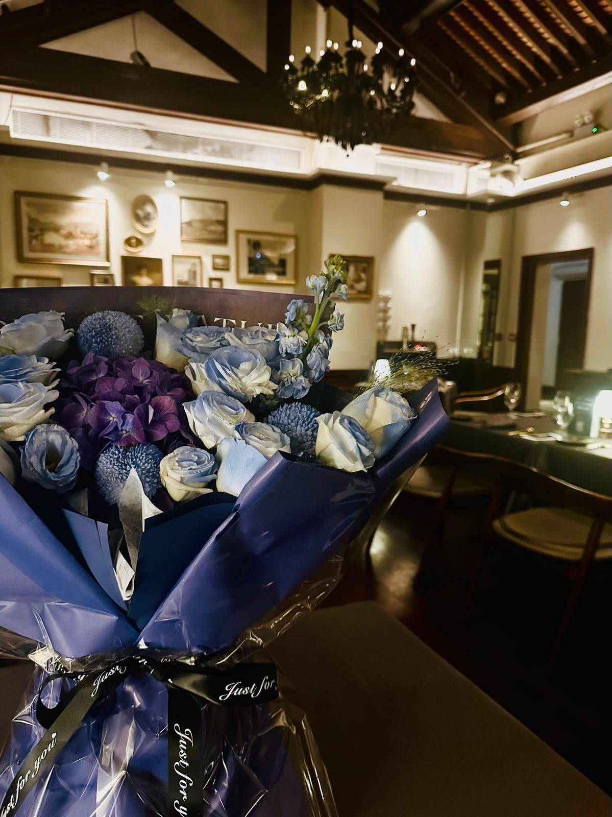 惟事主不太滿意網上款式和價錢,於是轉到內地網購平台「淘寶」搜索,結果發現有一間網店可以直送花束到香港尖沙咀的餐廳,形容對方在運送過程中會與事主保持聯絡,其最終花費400人民幣(約425港元)、當中包含80人民幣(約85港元)運費就買到一札紫藍色花束,形容「實物好大」,「當然事前同餐廳講定,餐廳又配合得好好,問番職員是帶有鄉音的姨姨送嚟,而事前佢也講過話會親自送。真實用戶,非打手。」