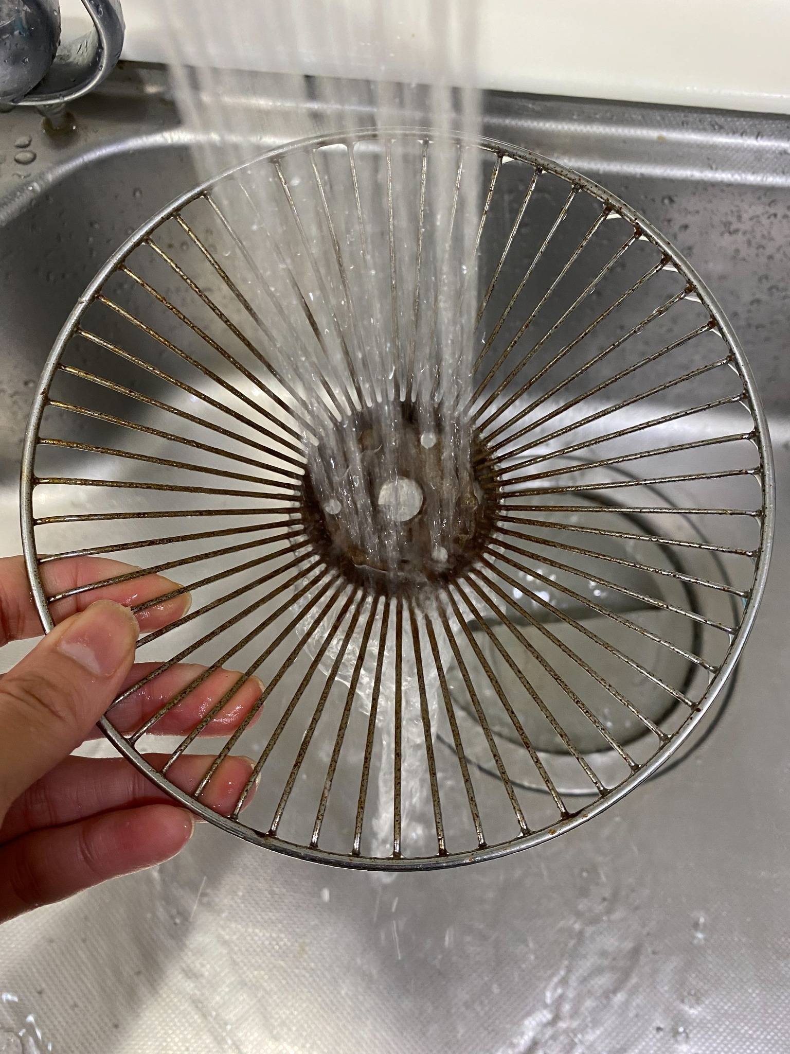 陳映如表示家中有洗碗機,在步驟四取出配件後,只要沖一下水,就可放入洗碗機清洗,不用作任何刷洗。如想浸泡油網,她則建議使用過碳酸鈉。