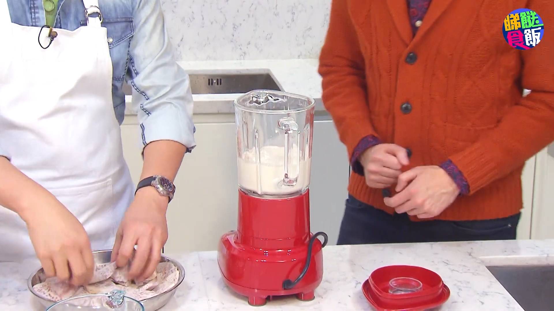 步驟四. 備攪拌機,分次倒入粉漿(步驟三),再逐次加入蒸好的芋頭片,全部打至幼滑成芋漿,備用。