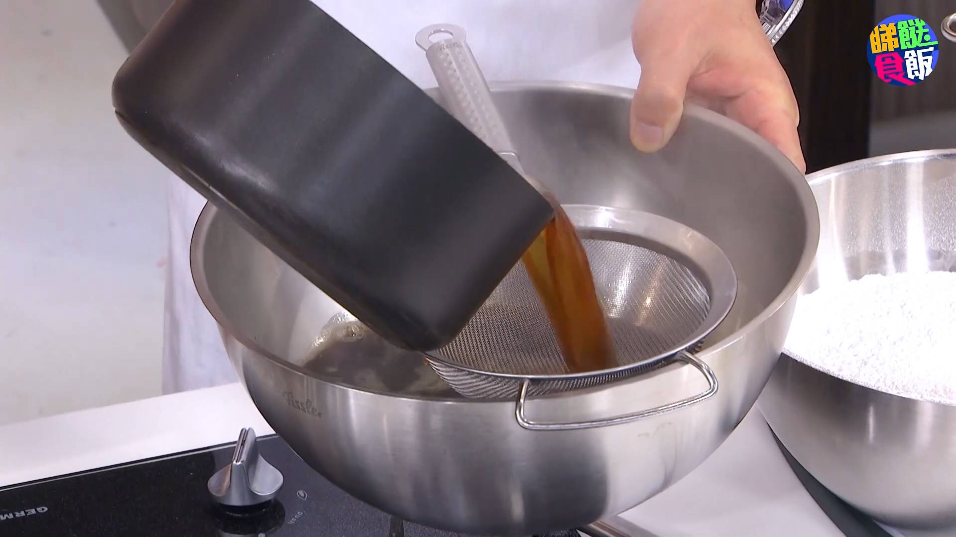 步驟一. 黑糖先用水煮溶,用密篩過濾雜質,涼卻後備用。