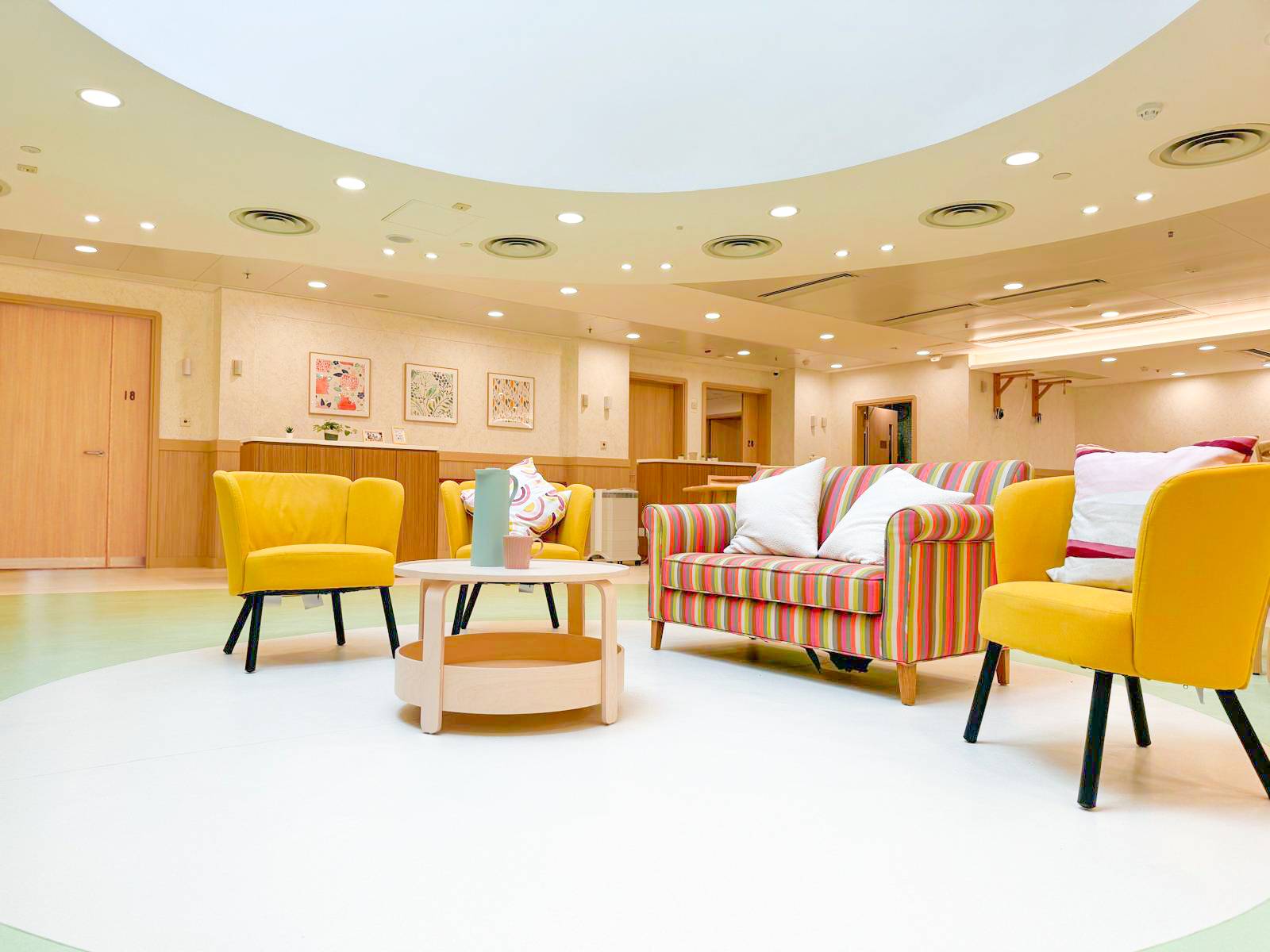 1️⃣ 100 平方米共用大廳(設有大天窗引入日光,大電視及復康運動設備)