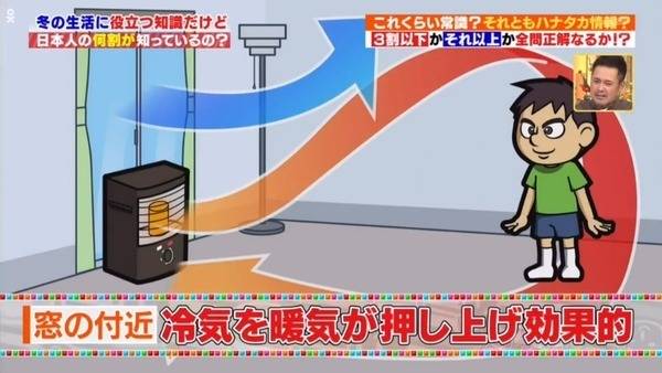 日本節目《日本人の3割しか知らないこと》早前曾分享4個寒冬小知識,提醒如將暖爐放在房間中央反而會降低保溫效果,隨時越用越冷。洗熱水澡時亦應先沖洗一個部位,以免出現熱休克。
