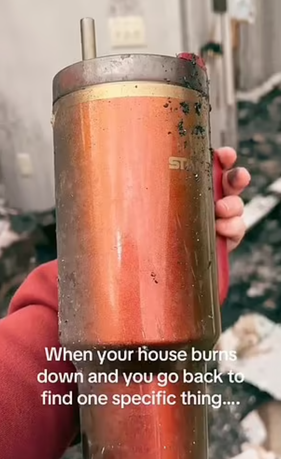 Alexus近日在TikTok上傳影片,分享她家被燒毀後的慘狀。她在影片中穿過殘垣斷壁,來到未婚夫面前,未婚夫舉起那個乾淨的Stanley保溫杯。該杯子是Stanley聯乘Lainey Wilson Country Gold系列,雖然上面覆蓋著灰塵,但沒有凹痕、劃痕或燒痕。