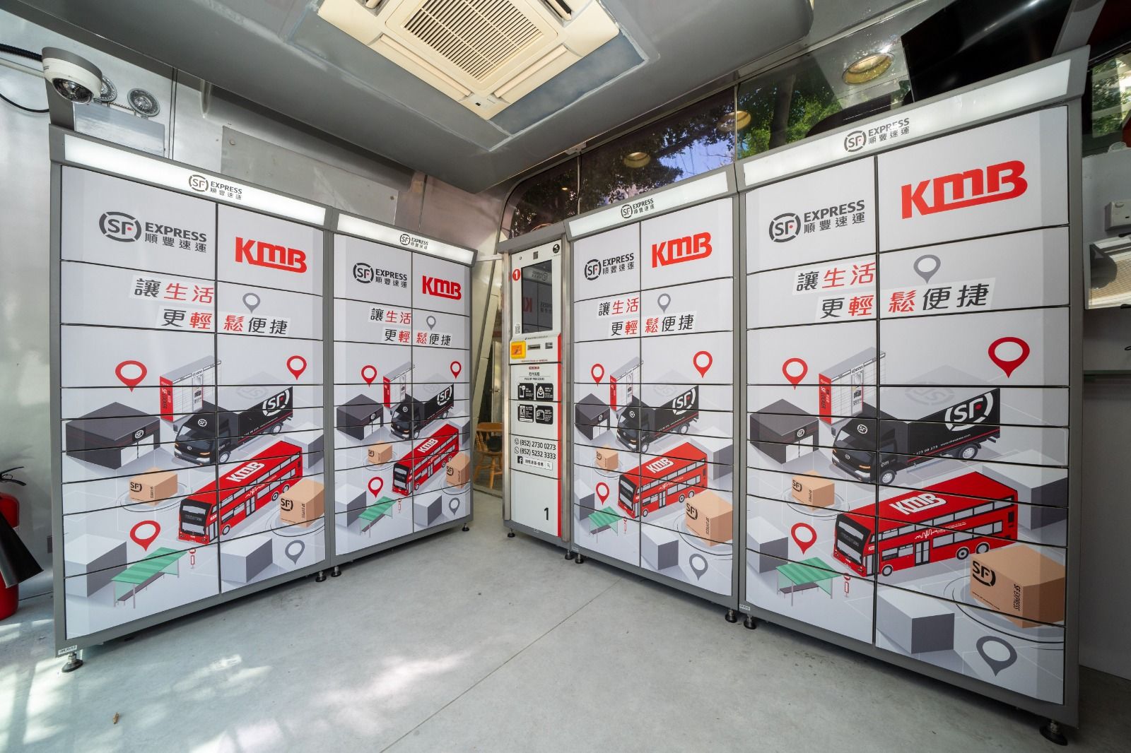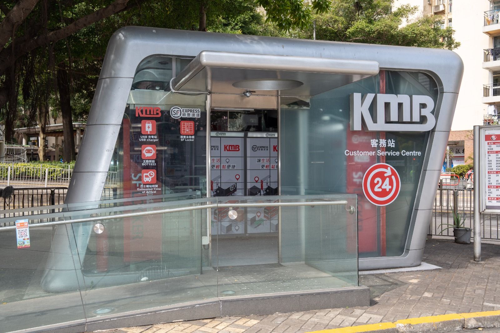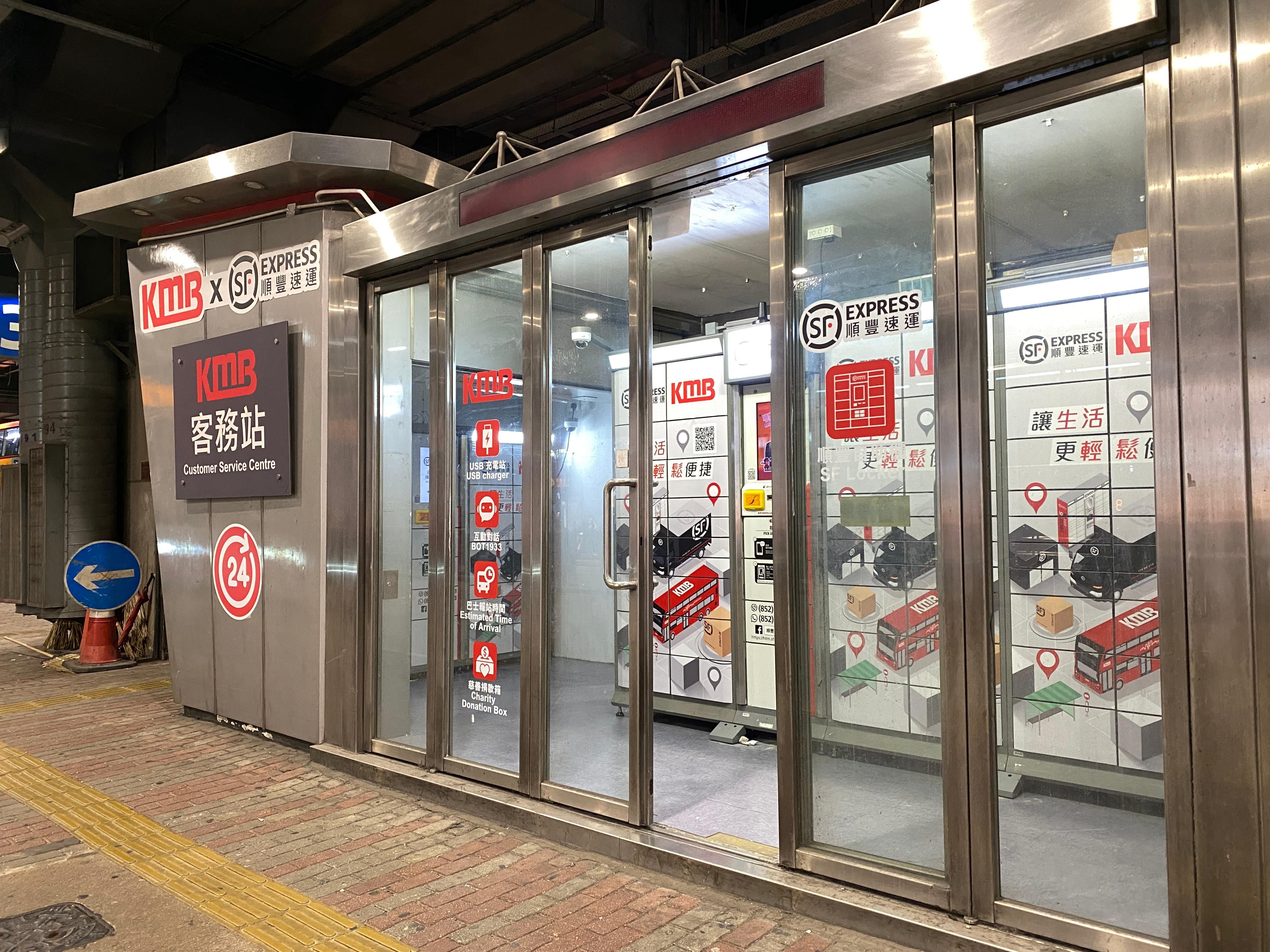 九巴與順豐香港合作,開設「九巴x順豐‧客務站」,全天候24小時運作,除了自助取件服務,更首次在九巴巴士總站引入自助寄件服務,同時提供九巴及龍運路線預計到站時間預報、網上即時對話客服查詢和充電服務。