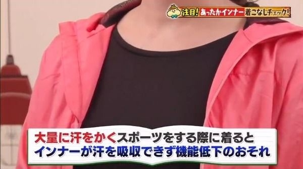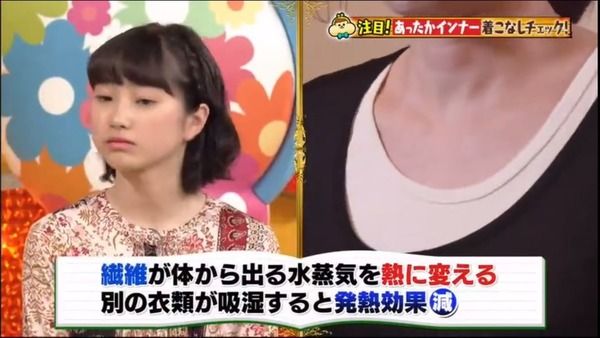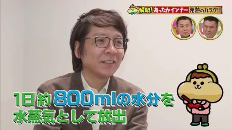 【HEATTECH/UNIQLO/天文台/天氣】日本電視節目《有吉のお金発見 突撃!カネオくん》,早前邀請到UNIQLO產品研發部長中野正海,拆解UNIQLO保暖內衣的原理。他指人體即使不是處於運動狀態,每天都會排出約800毫升水蒸氣,HEATTECH保暖內衣就運用特殊發熱質料製造,能將這些水分鎖住並轉換成熱能,達至保暖效果。中野又列出3大錯誤穿法,避免削弱保暖內衣的功效。