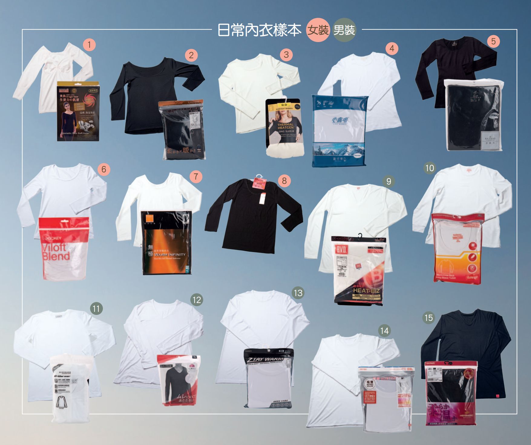 消委會早前測試20款聲稱具保溫、保暖、防寒效能的長袖內衣,當中15款為日常穿著的內衣,另外5款為聲稱適合於運動或戶外活動時穿著的底層衣,由$99至$559不等,男女裝各佔一半。