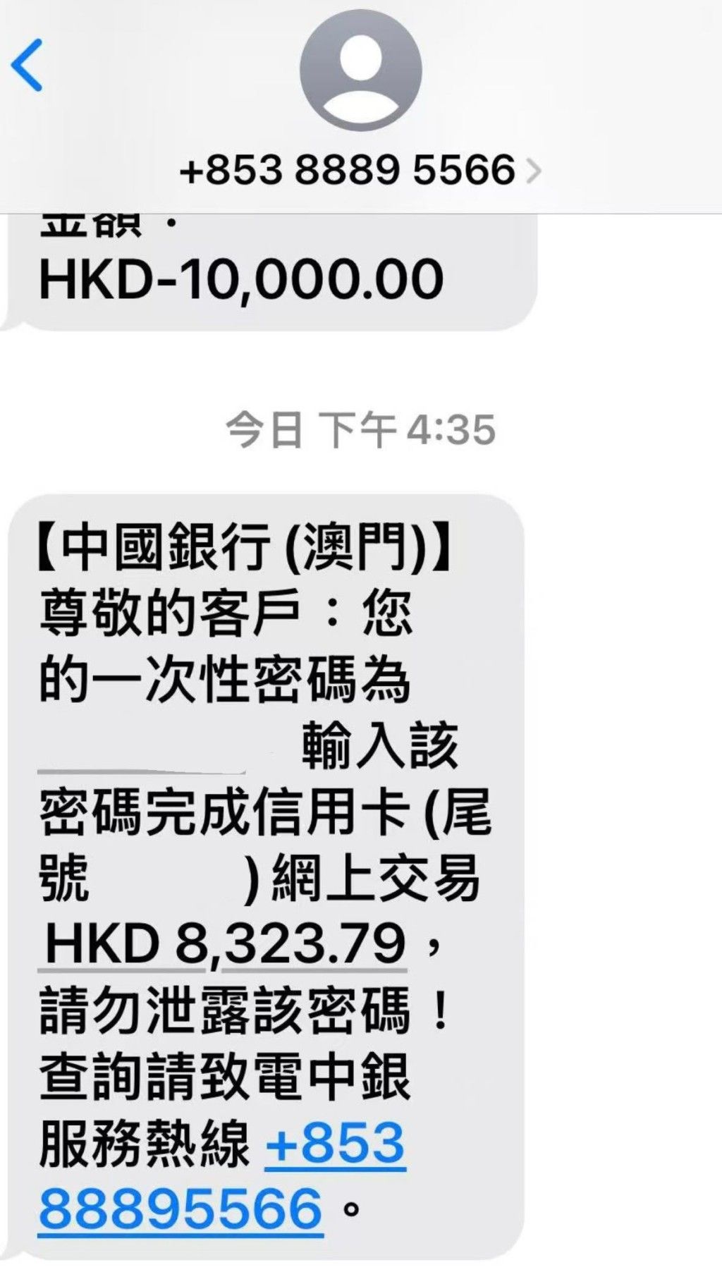 5️⃣ 在填寫一次性驗証碼前,受害人發現交易金額為 $8323,識破騙局