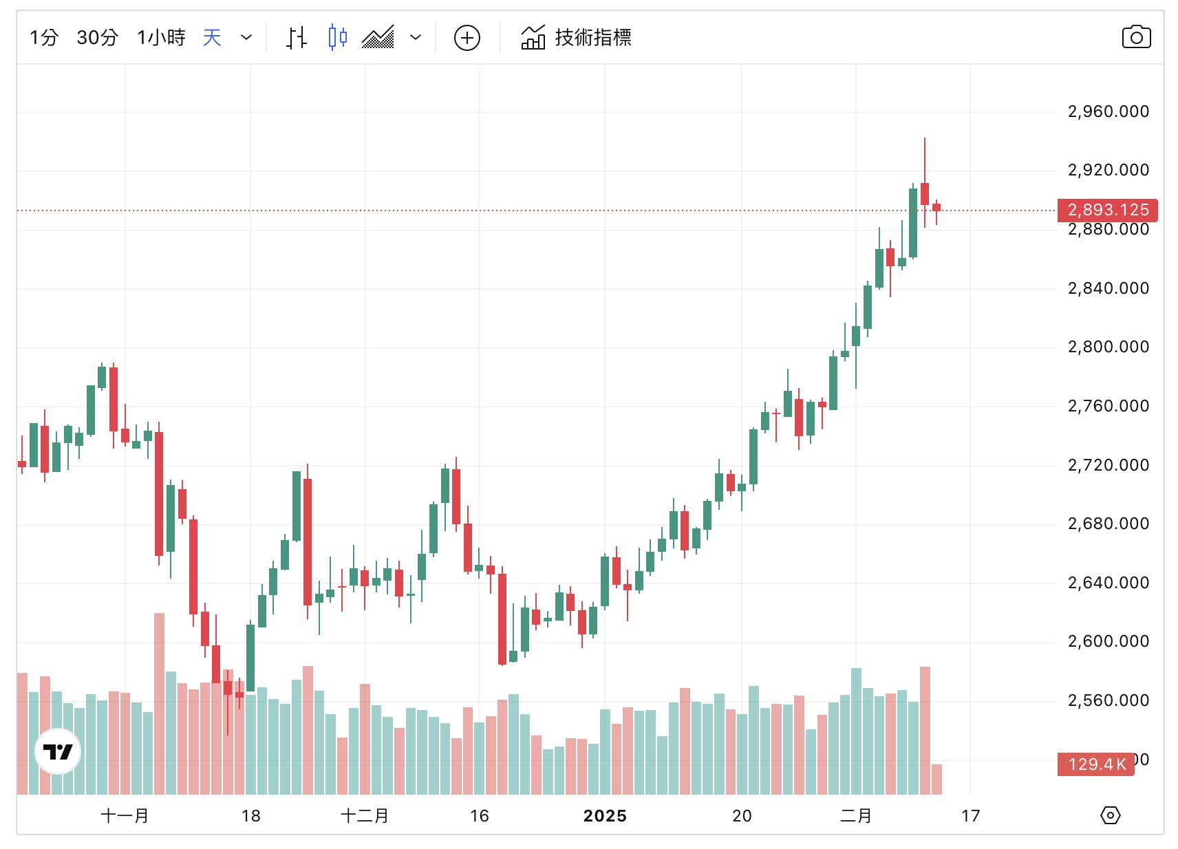 根㯫《日經中文網》報導,紐約期貨價格 2 月 11 日紐約期貨黃金價格比前一天上漲 34.1美元(1.2%),達至 2968.5 美元/盎司,連續3個交易日刷新最高點。