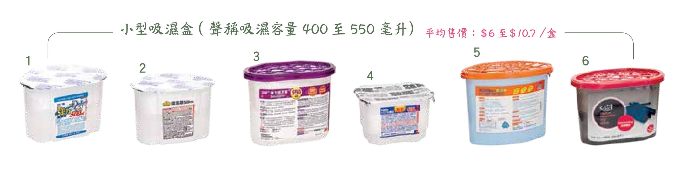 小型吸濕盒樣本「白元」強力抽濕器500mL及「Topvalu」於前期(首7天)吸濕速度快,每日平均吸濕量分別為8.8毫升及8.4毫升,吸濕速度之後逐漸減慢,至後期(69至80天)下降至每日平均2.1至2.2毫升。「象球牌」前期的吸濕速度相對緩慢,每日平均吸濕量只有5毫升,不過其後期吸濕速度則與「白元」及「Topvalu」相若。
