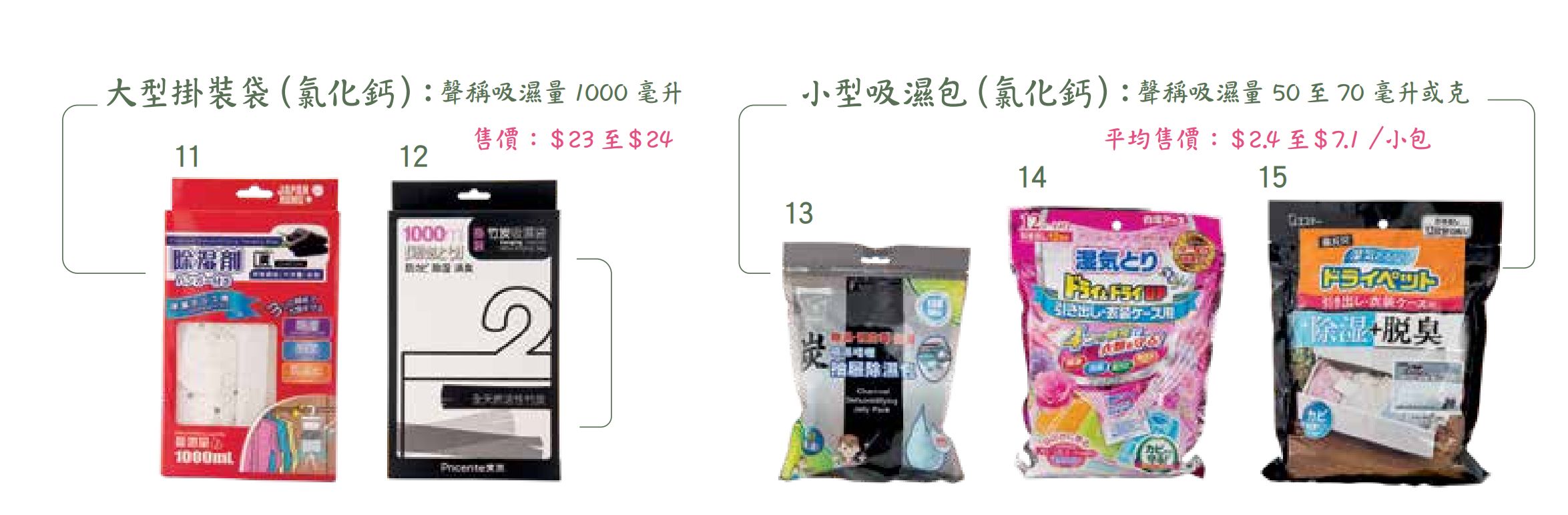 【消委會/除濕/潮濕/回南天/吸濕劑/吸濕包/防潮珠/竹炭/活性炭】消委會早前測試市面上20款家用吸濕劑,包括10款氯化鈣吸濕盒、2款氯化鈣大型掛裝袋、3款氯化鈣小型吸濕包、2款硅膠防潮珠及3款竹炭/活性炭,結果發現不同種類的吸濕劑的吸濕量和吸濕速度極懸殊,部分樣本更出現滲漏情況。