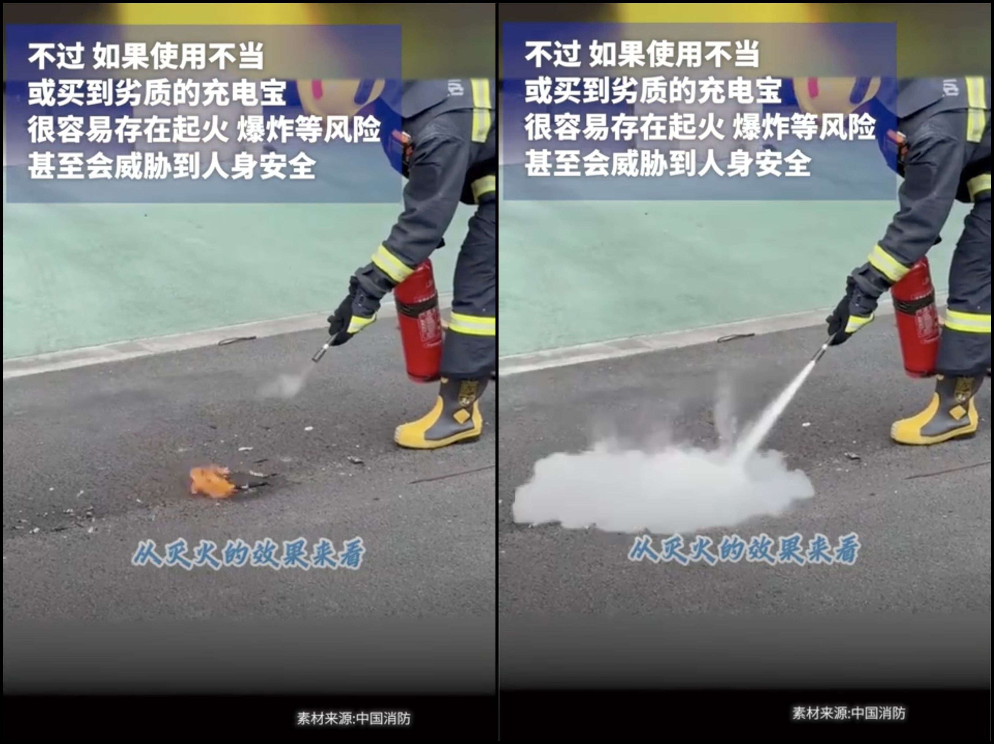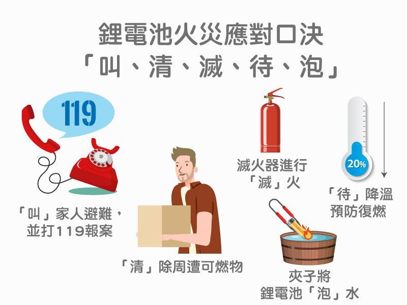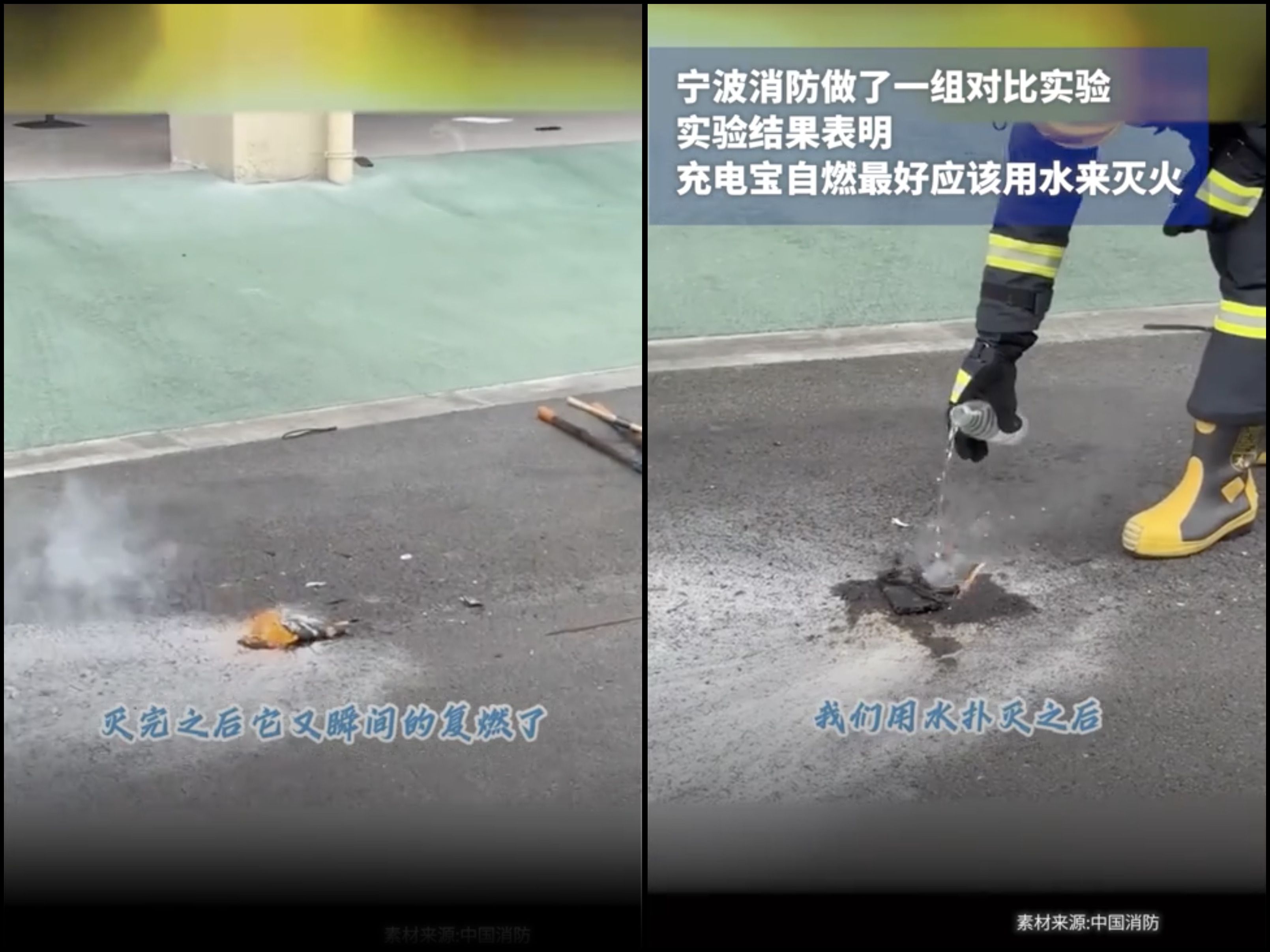 ⚠️寧波消防亦做過實驗,以滅火器滅火後,因為鋰電燃燒溫度高,很容易復燃,此時可以用水淋熄火種