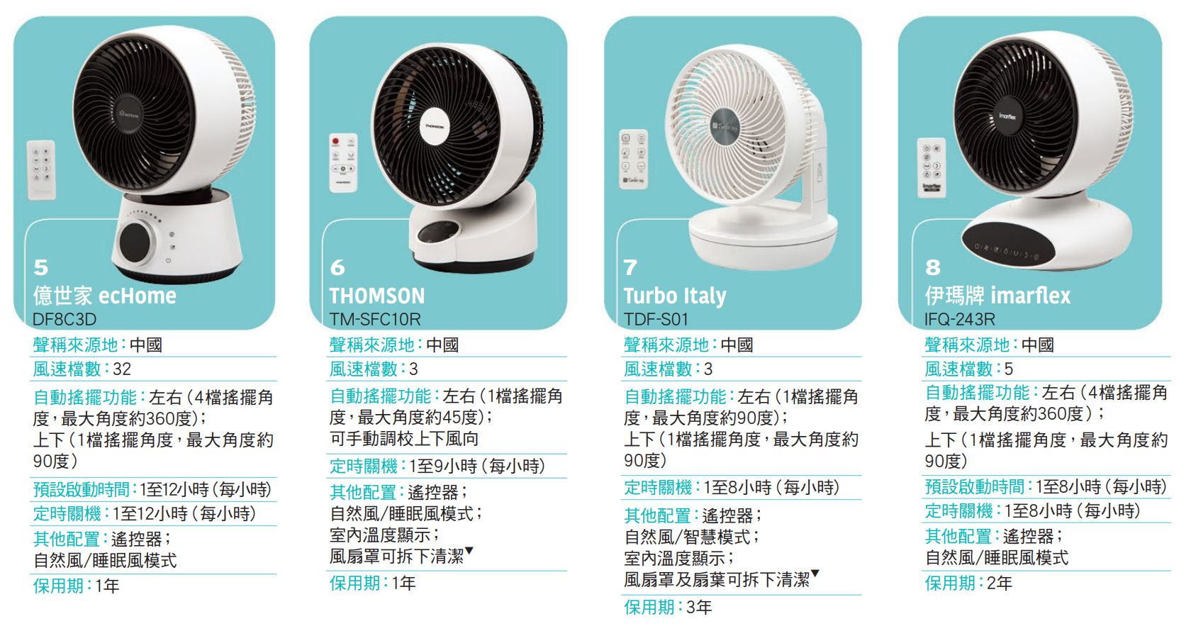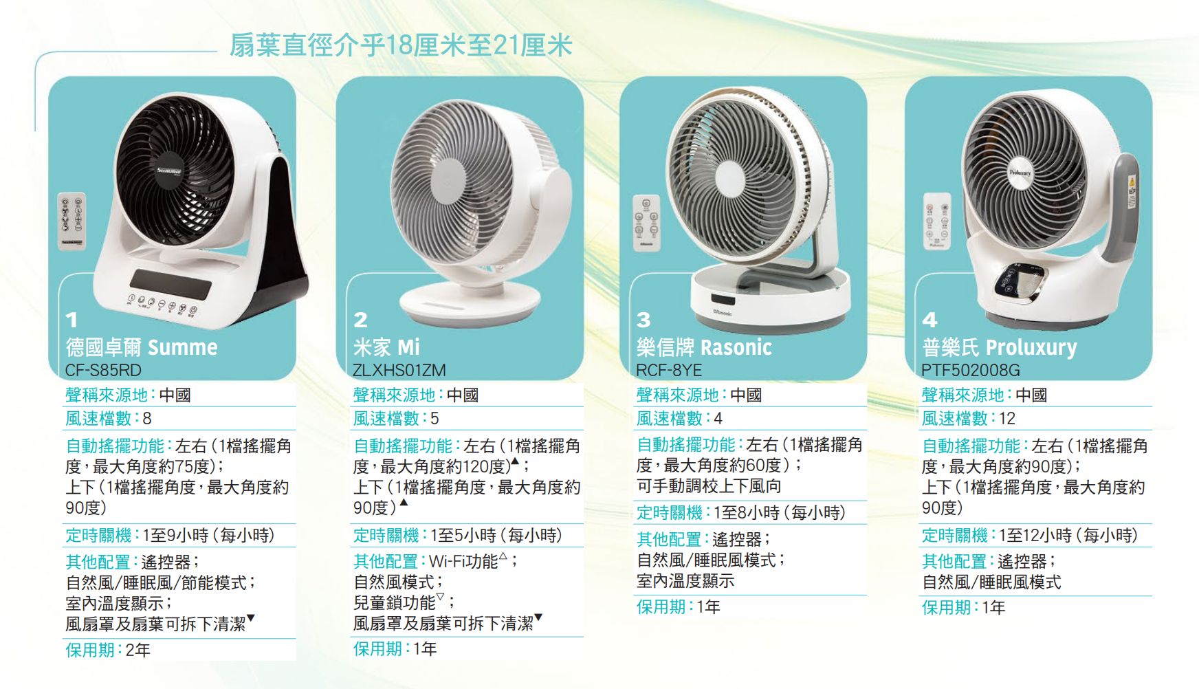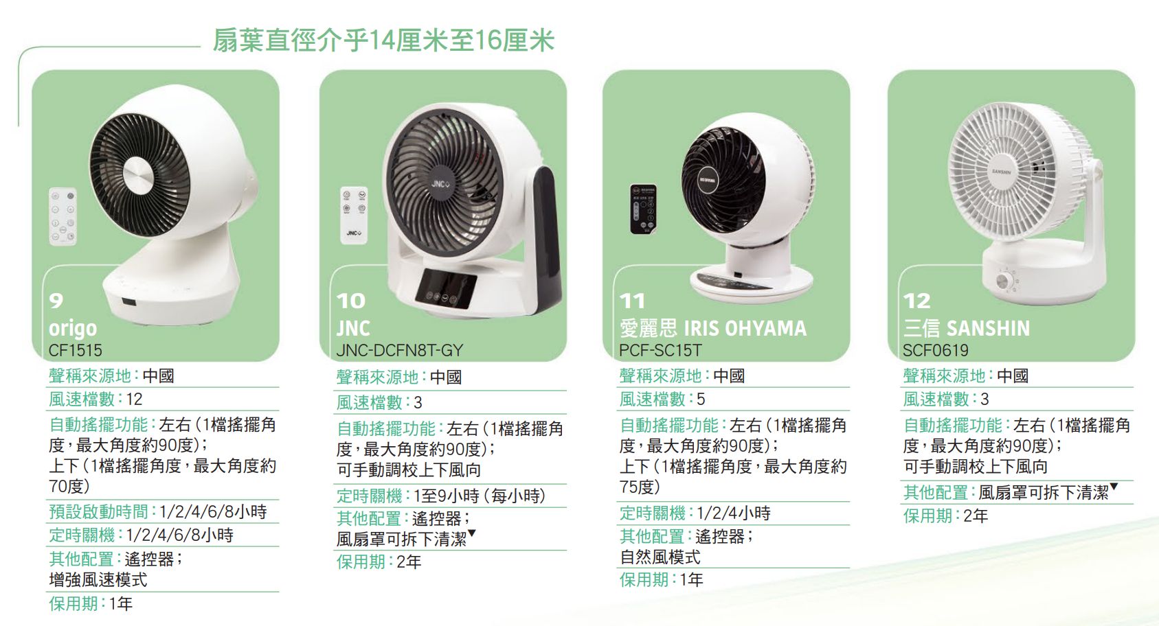 【消委會/循環扇/風扇/慳電/天氣/安全/風量/能源效率】消委會早前測試12款循環扇的安全及效能表現,發現8款未能通過部分安全測試項目,包括1款有夾到兒童手指的風險,2款部分塑膠物料的阻燃性不足。另外,樣本間的送風量最多可相差52%,而能源效率最多更相差達67%。4款獲4星半總評的樣本約售$459至$798,整體表現更勝1款售價最高(約$1,149)、獲4星總評的樣本。
