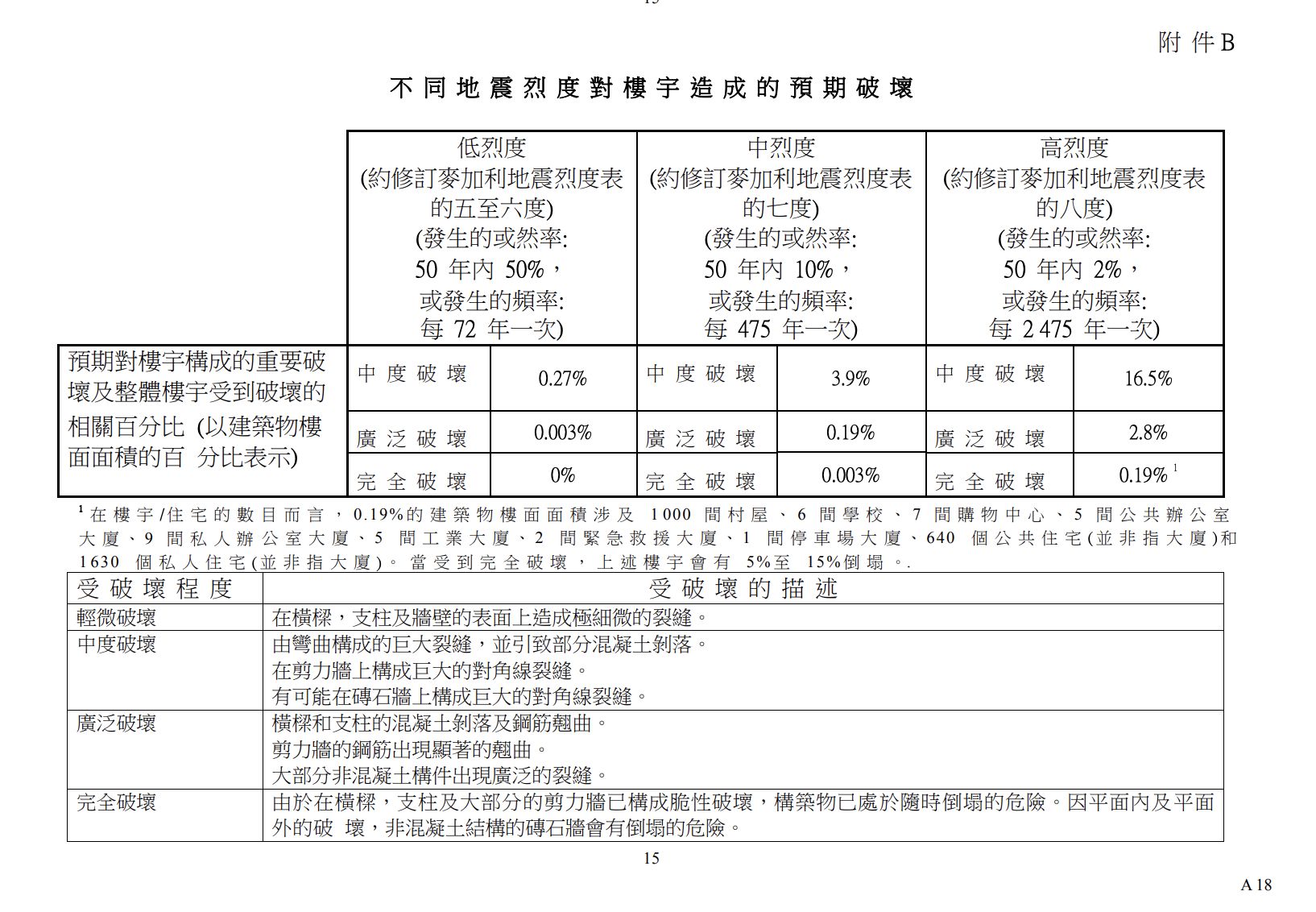 另外,該文件亦交待屋宇署進行的一項有關地震烈度對建築物破壞的研究,以下是研究結果。
