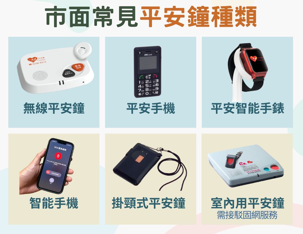 1️⃣ 具備緊急警報系統的平安鐘、流動設備(如手機、智能手錶)